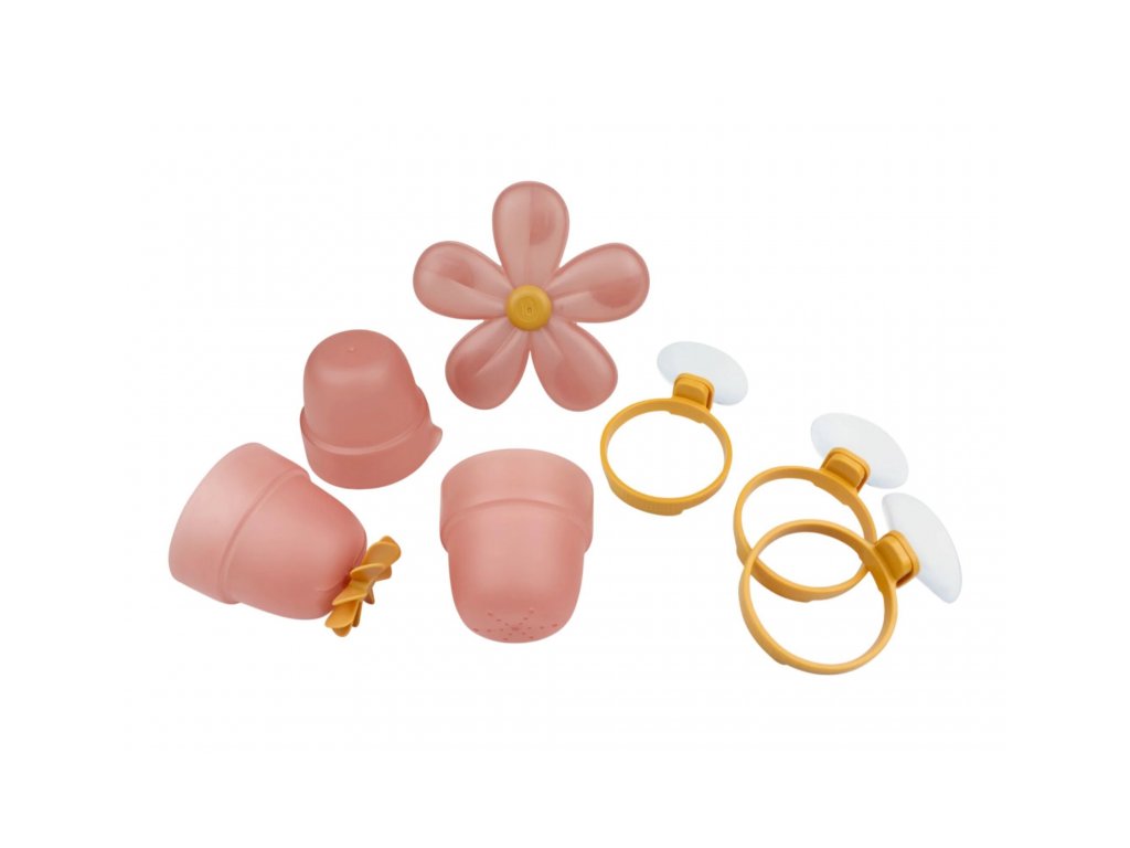 Balení obsahuje 4 prvky s přísavkami: květinu, 2 kelímky, 1 nalévací hrneček