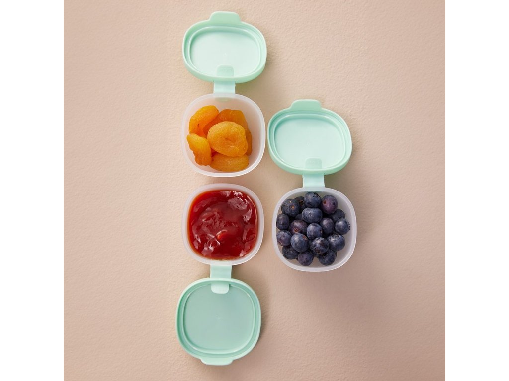Tyto mini krabičky na svačiny budou ideální doplněk nejen svačinových boxů b.box, ale také pro samostatné použití. Silikonové těsnění udrží oblíbené svačinky vašich dětí déle čerstvé! Pro zajištění dokonalé těsnosti je důležité krabičky řádně uzavřít – ujistěte se, že máte správně nasazené těsnění (nápis b.box vždy na vnější straně) a při zavření uslyšíte charakteristické "cvaknutí".