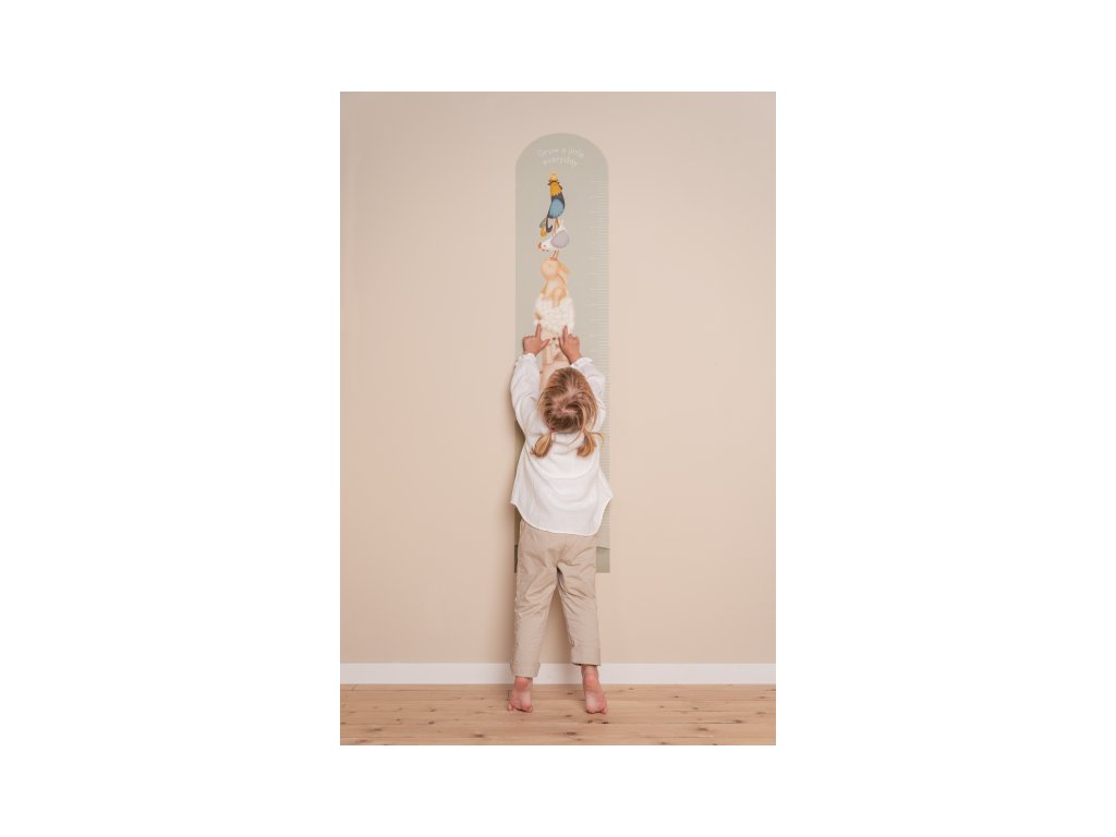 Samolepicí metr na stěnu s krásnými motivy zvířátek žijících na farmě vám umožní snadno sledovat růst vašeho dítěte až do 160 cm. Stane se krásnou dekorací v dětském pokoji a bude pomáhat rozvíjet fantazii vašeho dítěte. Můžete jej umístit na stěnu a jiné hladké, tvrdé povrchy. Samolepicí metr z vinylového materiálu s matným povrchem a průhlednými okraji se snadno aplikuje a snadno jej i odstraníte. Metr je součástí designové kolekce hraček a doplňků Little Dutch Farma.