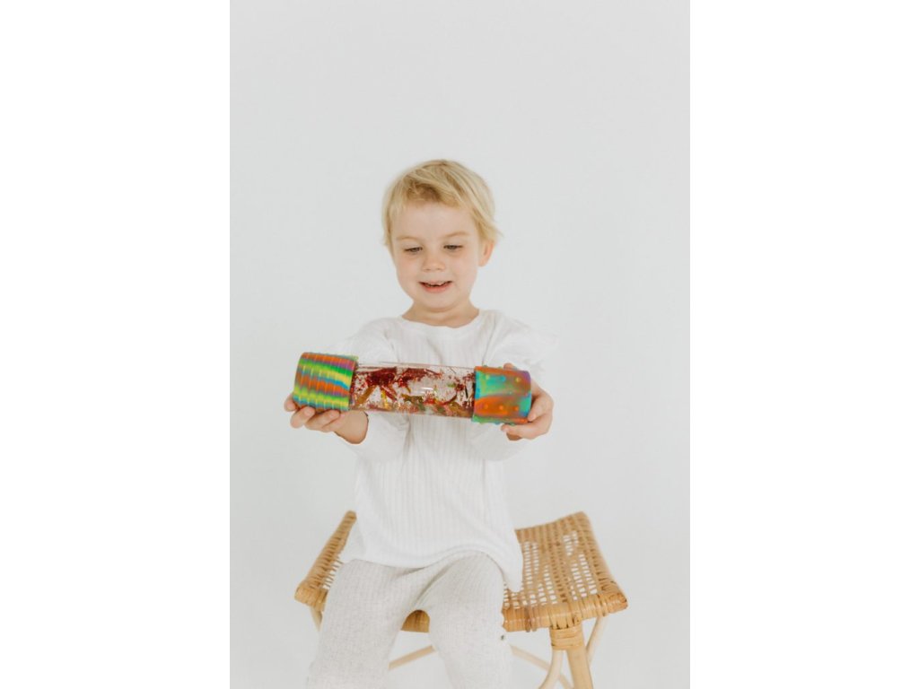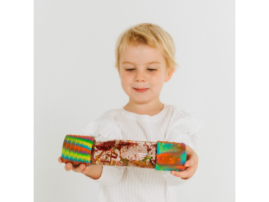 Unikátní senzorická láhev značky Jellystone Designs podporuje v dětech kreativitu, zájem o věc a koncentraci. Je tak vhodná především pro dětské povahy, co chvíli neposedí. Senzorická lahvičku poskytne mnoho možností využití od pozorování třpytivé magie až po zkoumání různých textur na silikonových uzávěrech – každá chvíle hry s touto uklidňující senzorickou lahví je smyslovou cestou, která zklidní zaneprázdněnou mysl a vytváří prostor pro chvíli klidu a soustředění.