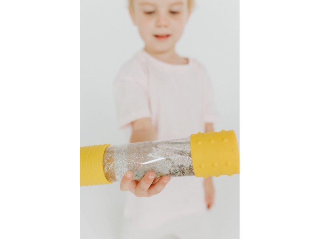 Unikátní senzorická láhev značky Jellystone Designs podporuje v dětech kreativitu, zájem o věc a koncentraci. Je tak vhodná především pro dětské povahy, co chvíli neposedí. Senzorická lahvičku poskytne mnoho možností využití od pozorování třpytivé magie až po zkoumání různých textur na silikonových uzávěrech – každá chvíle hry s touto uklidňující senzorickou lahví je smyslovou cestou, která zklidní zaneprázdněnou mysl a vytváří prostor pro chvíli klidu a soustředění.