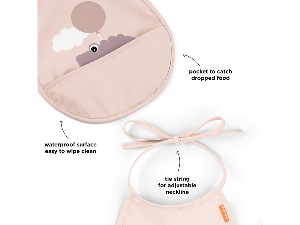 Díky voděodolnému povrchu poskytují vynikající ochranu oblečení vašeho dítěte a po jídle se snadno otírají. Vestavěná kapsa je ideální pro zachycení jakéhokoli upuštěného jídla a pomáhá minimalizovat nepořádky při jídle. Pohodlné zavazování na šňůrku zajišťuje snadné a nastavitelné oblékání pro vaše nejmenší. Zpříjemněte si jídlo s těmito rozkošnými a praktickými bryndáčky.