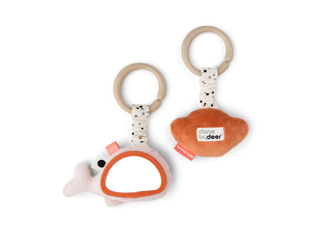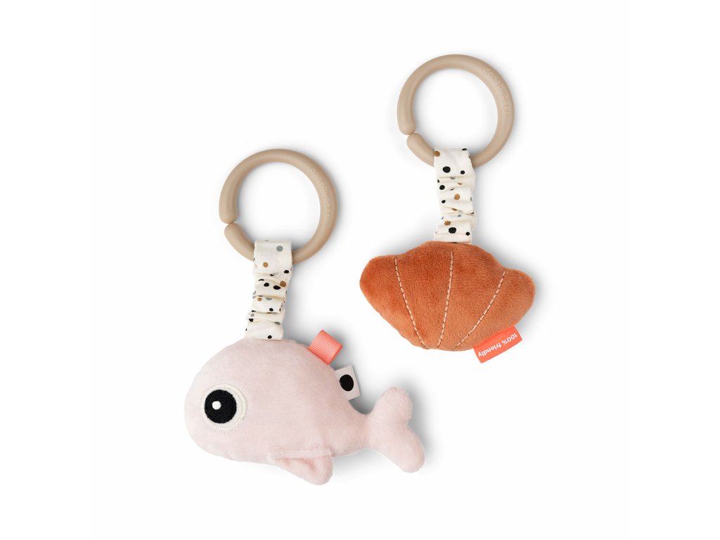 Závěsné hračky s mořskými přáteli jsou perfektním doplňkem pro hraní a na cestách pro Vaše děťátko. Připevněte dvě hračky ke kočárku, hrazdičce nebo útulnému hnízdu pro skvělou zábavu.