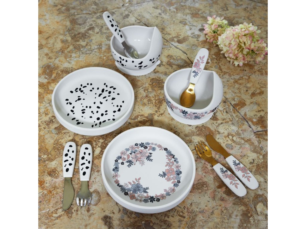 Krásná a praktická miska Elodie je vyrobena z potravinářského silikonu bez BPA. Mistička je lehká, měkká a díky silikonové části dobře přilne ke stolu a pomůže ji udržet na jednom místě. Lžička je vyrobena z nerezové oceli a silikonu. Zaoblený design misky a tvarovaná lžíce usnadňují nabírání jídla.