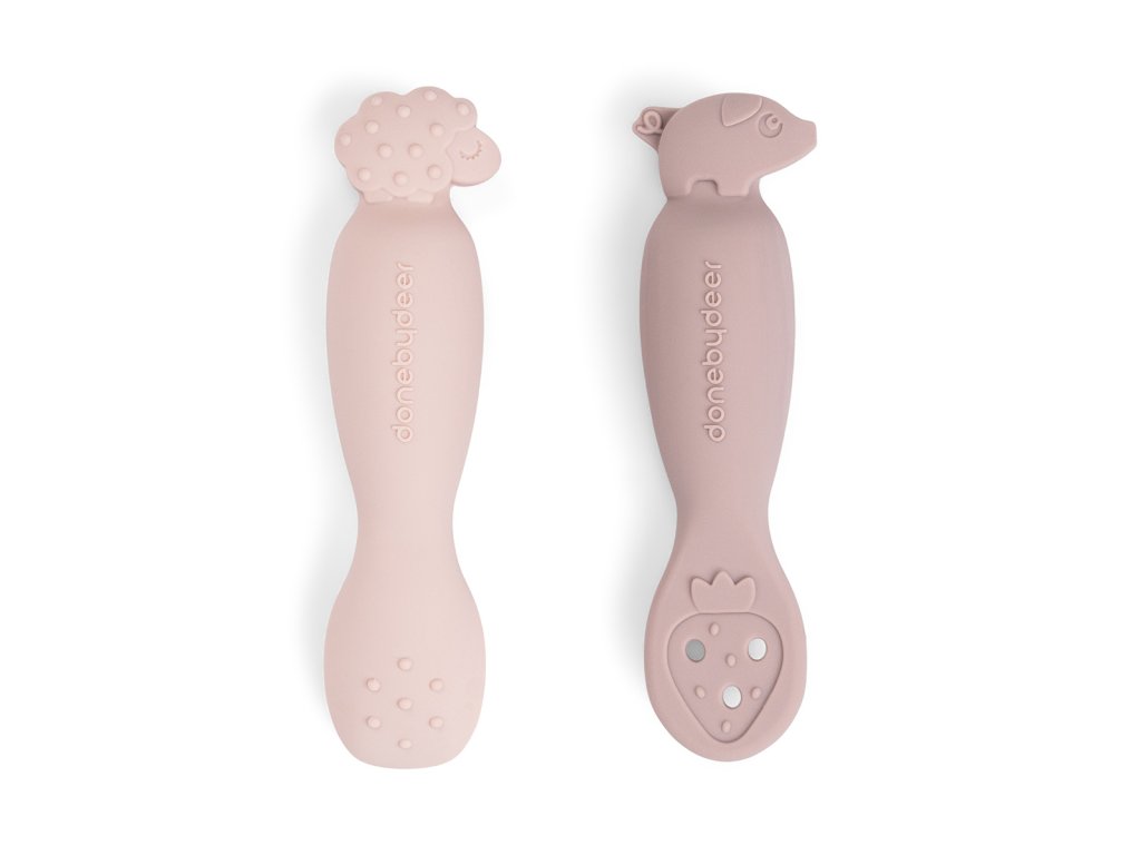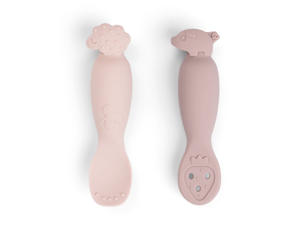 Silikonové lžičky Tiny farm 2ks -růžové