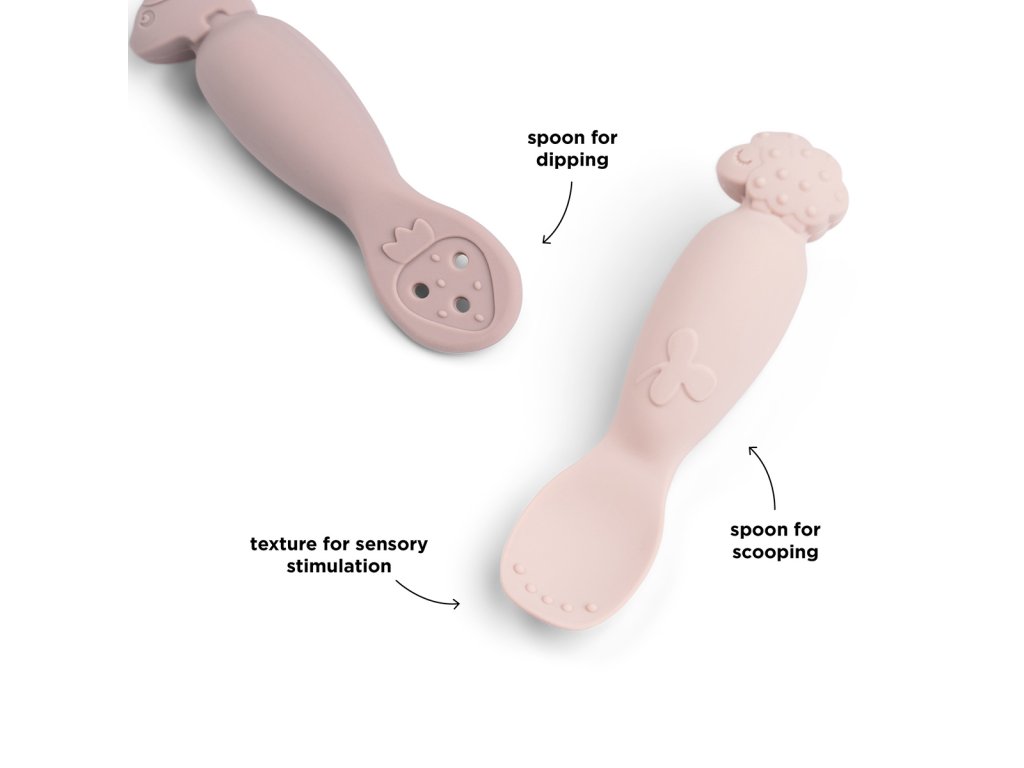 Když Vaše dítě začíná jíst samo, je příjemné mít k ruce společníka. Lžičky jsou vyrobeny ze silikonu, který poskytuje příjemný úchop pro malé ručičky. Velikost dětské lžičky je ideální pro samostatné batole, které se učí jíst samo a pro nadcházející roky.