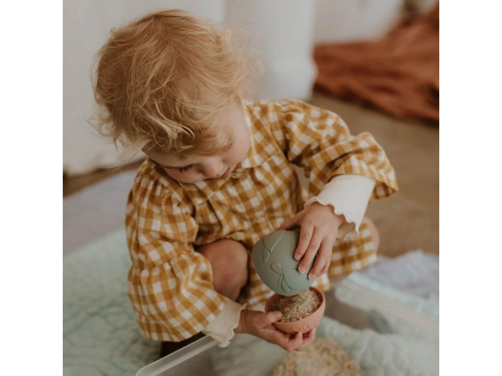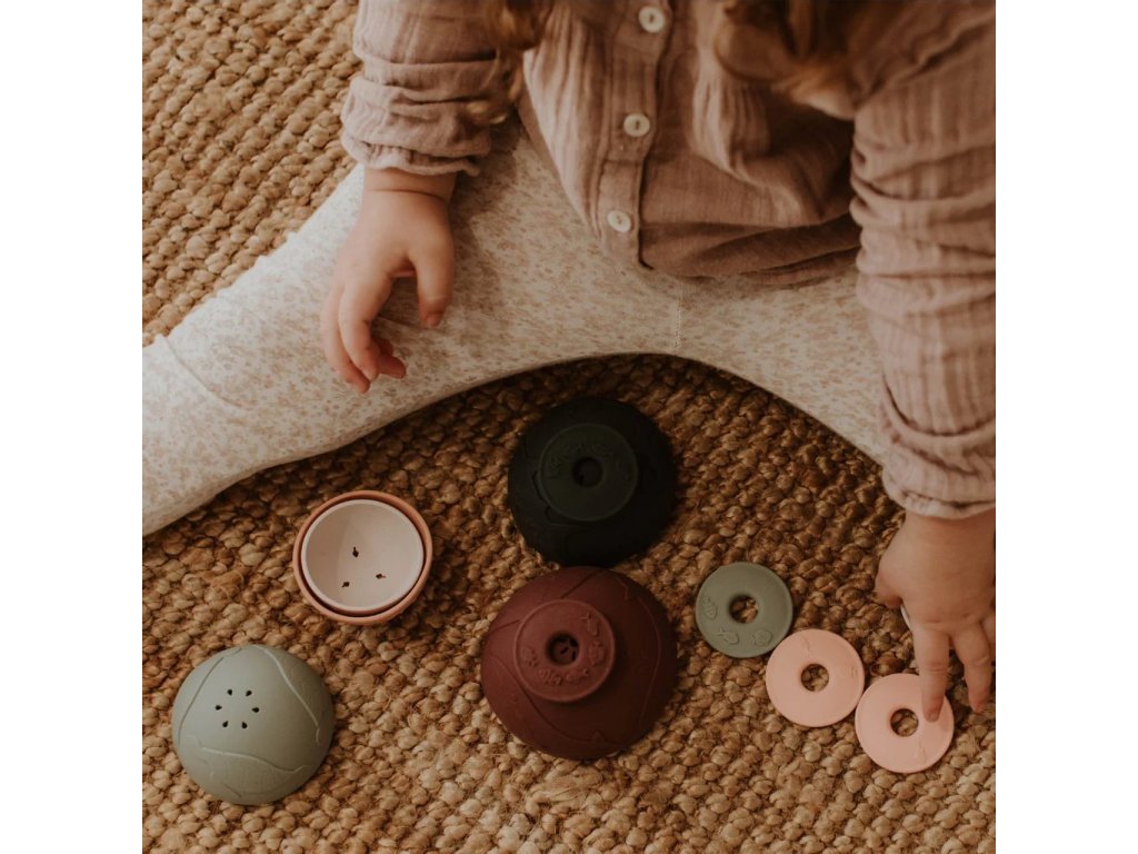 Děti procvičí koordinaci ruka-oko a kreativním myšlením. Kelímky naskládejte na sebe, vkládejte do sebe, schovávejte do nich i pod ně předměty, dělejte z nich v písku bábovičky nebo si hrajte s těstem. Možností na využití je hromada a v neposlední řadě spojujte kelímky do páru se souvisejícími mincemi. Vyrobeno z měkkého silikonu a vhodné i jako kousátka.