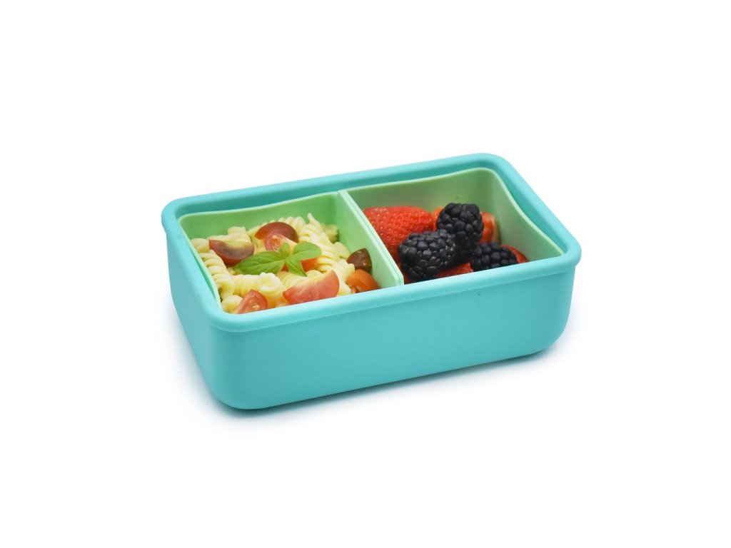 Silikonový bento box na svačinu 700 ml - Modrá/zelená
