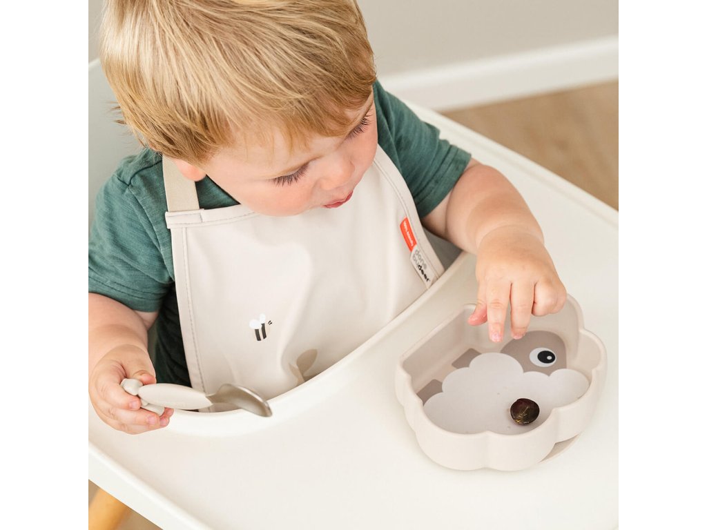 Bryndáček je voděodolný, snadno se otírá. Kapsa zachytí padající jídlo a ušetří vám spoustu času při úklidu.