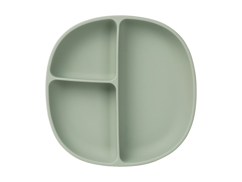 Silikonový dělený talířek s víčkem a přísavkou - zelený
