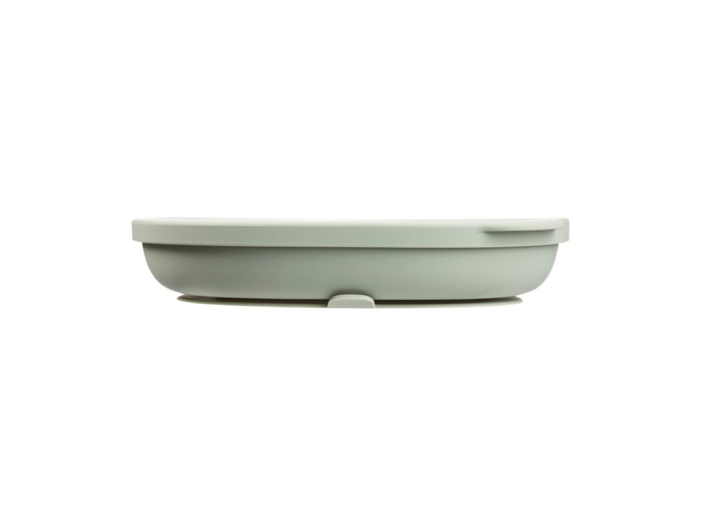 Vodotěsné víčko pomáhá udržet čerstvost jídla a můžete jej použít také jako další talířek na servírování. Zakřivené strany usnadní nabírání jídla a podporují děti při začátcích samostatného krmení. Silná protiskluzová přísavka udrží talířek na svém místě a po jídle ji lze snadno uvolnit zatažením za "záložku".