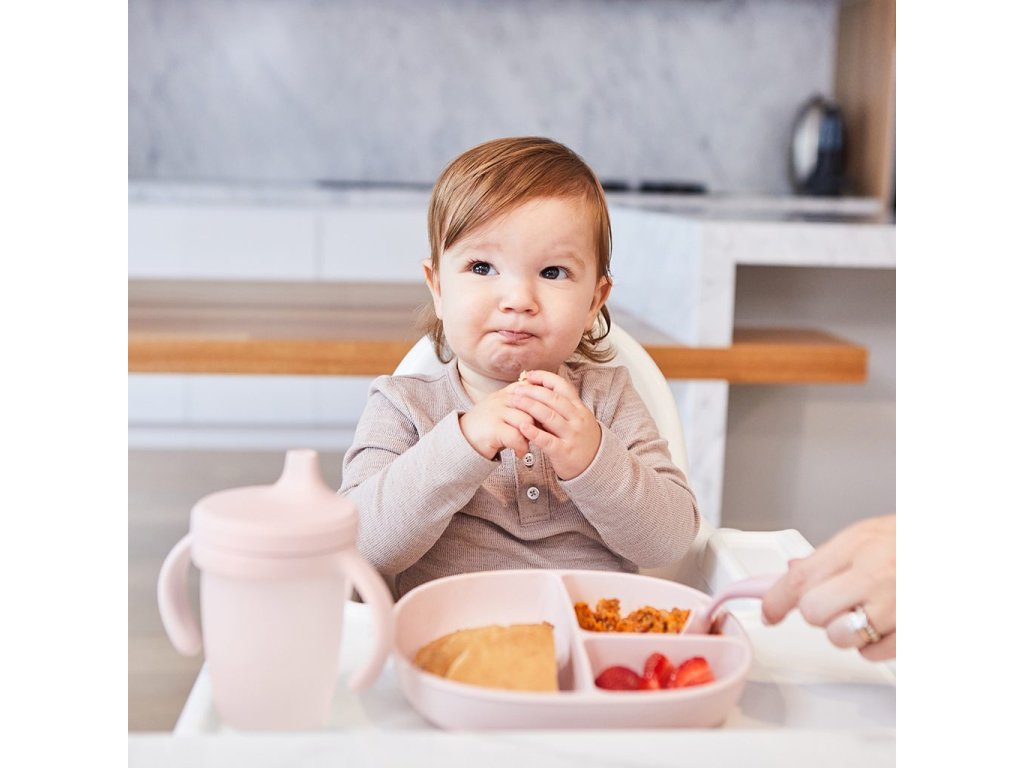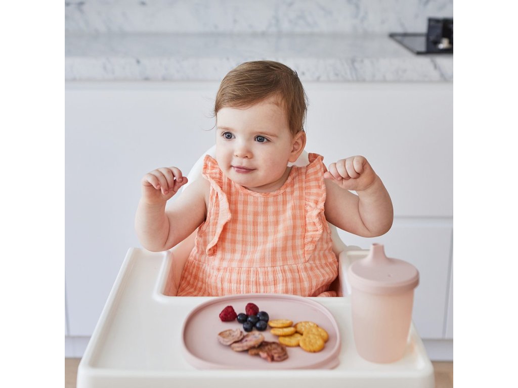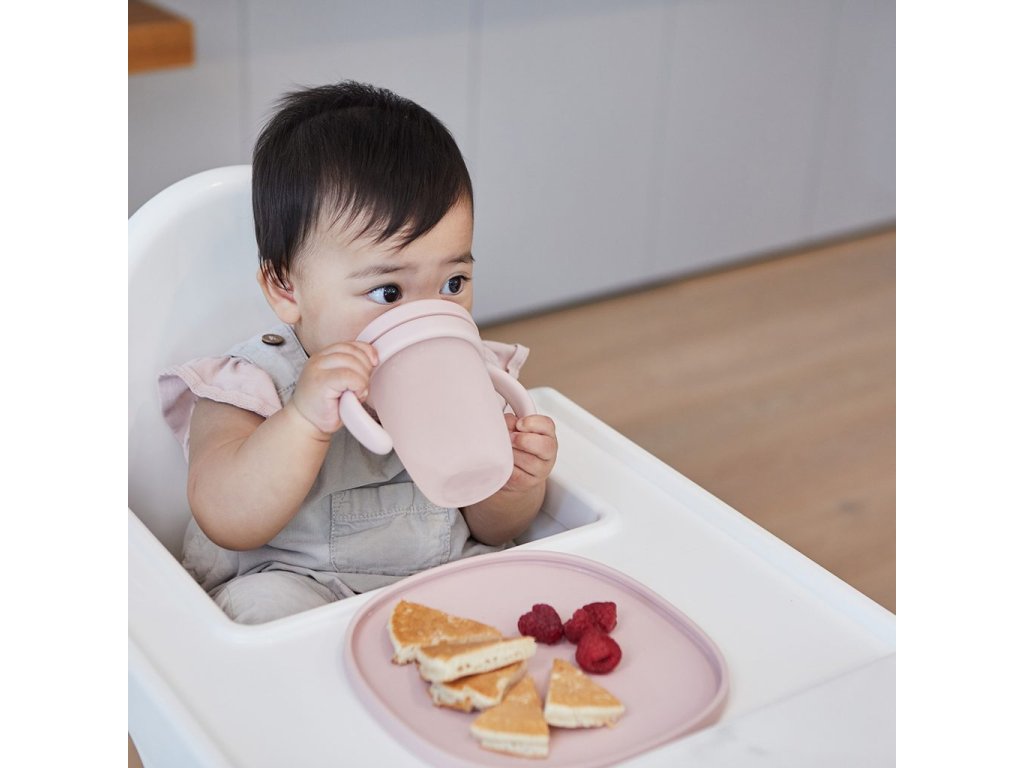 Silikonové víčko s pítkem, které neprotéká, pomáhá předcházet nechtěnému rozlití. Průhledný kelímek umožní rodičům sledovat hladinu tekutiny a pitný režim dítěte. Odnímatelné víčko a rukojeti se přizpůsobí věku a potřebám dítěte.