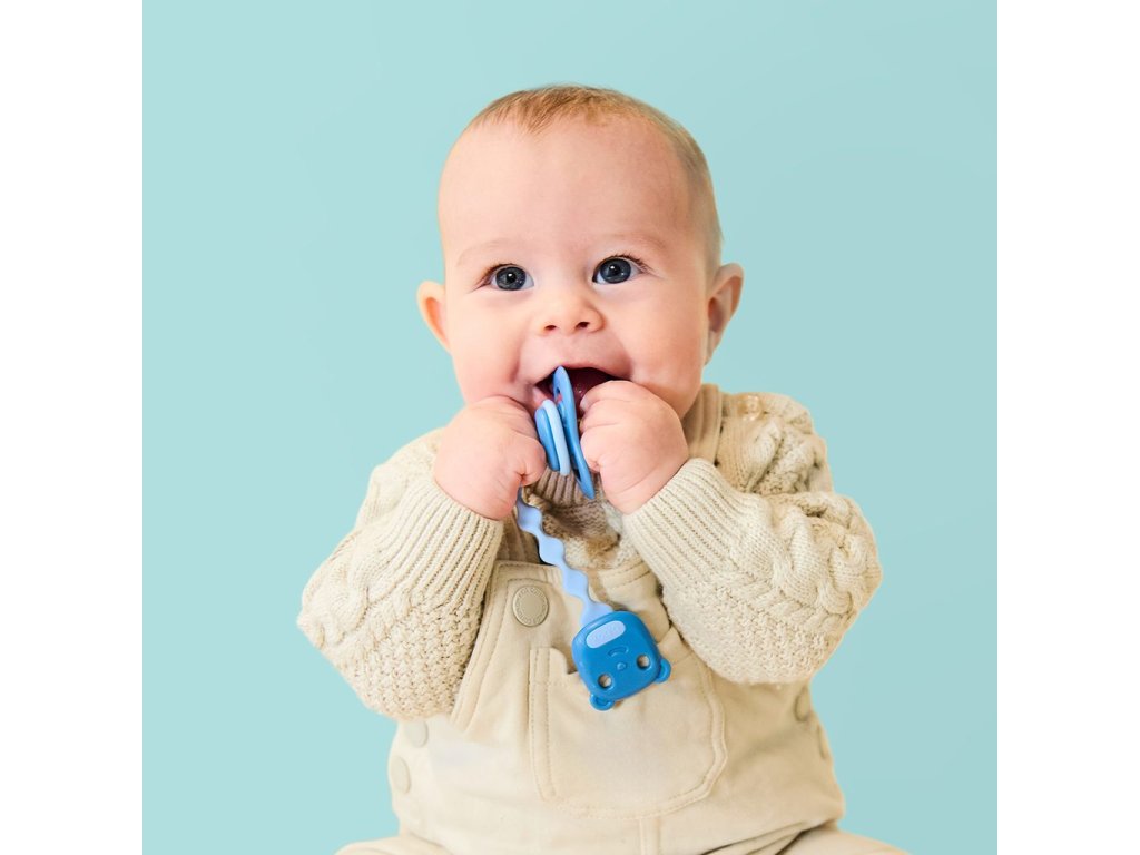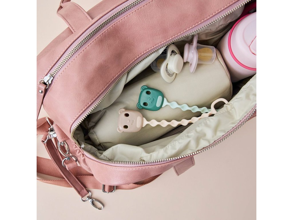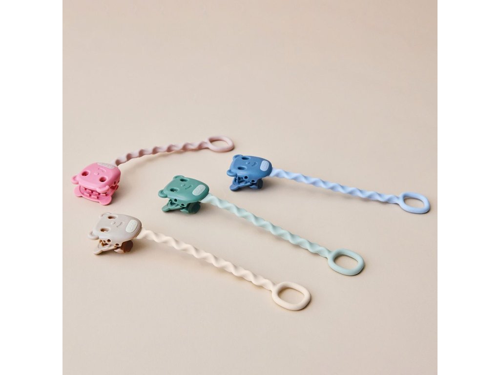 Klip má roztomilý design medvídka a díky snadnému mechanismu jej lze odepnout i připnout jednou rukou. Patentovaný 3D pásek je dostatečně flexibilní a ohýbá se do všech směrů. Silikonový pásek obsahuje antimikrobiální přísadu na bázi stříbra, která eliminuje až 99,9 % bakterií.