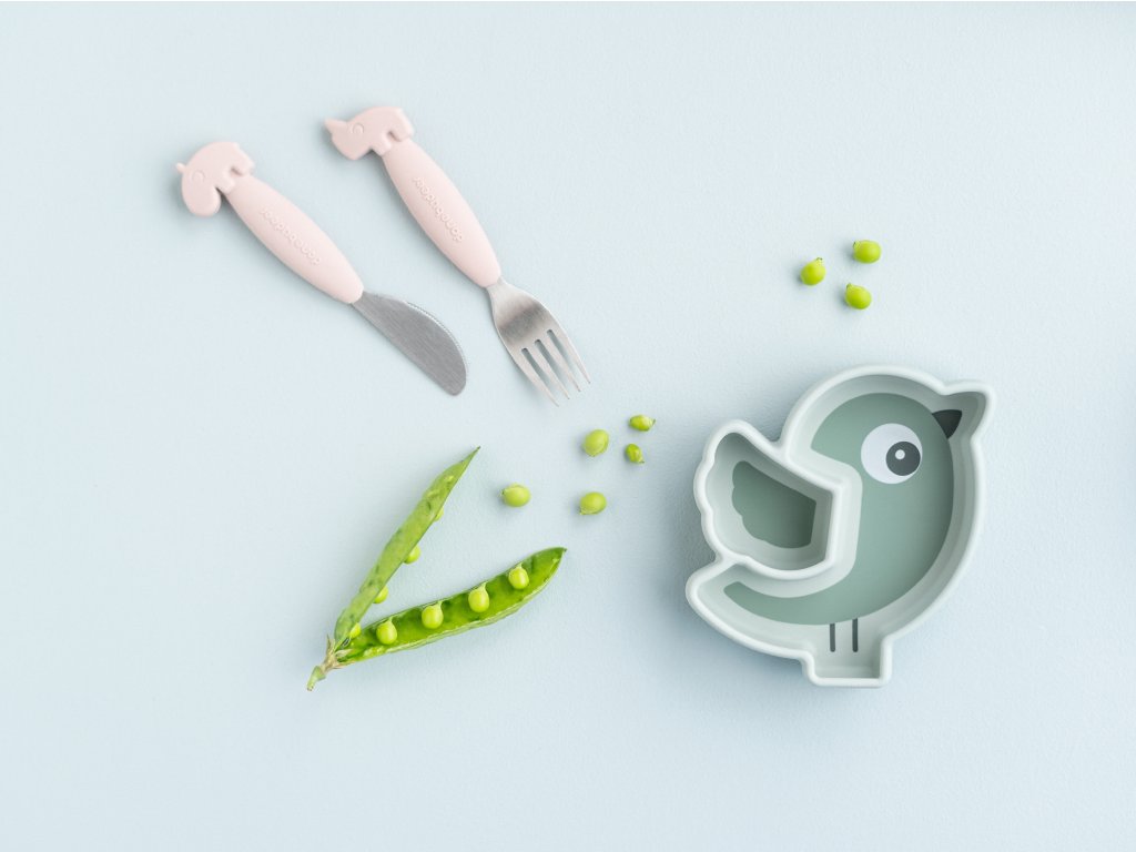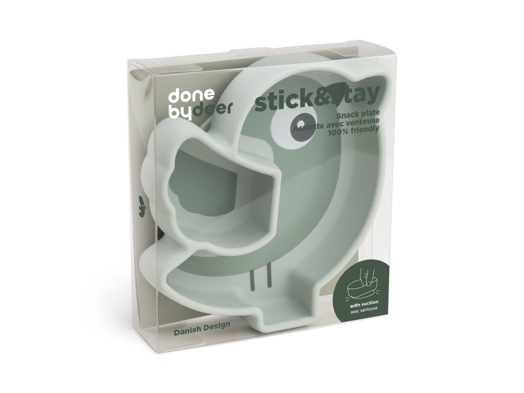 Přísavná základna zabraňuje malým dětem tlačit, překlápět nebo házet talíř .Dvě přihrádky pro oddělení potravin. Pod křídlem Birdee je skryta snadno odnímatelná klapka. Zaoblené vnitřní okraje usnadňují malým dětem nabírání jídla. 100% potravinářská kvalita a silikon bez BPA umožňuje bezpečné používání pro děti. Talíř na svačinu Birdee.