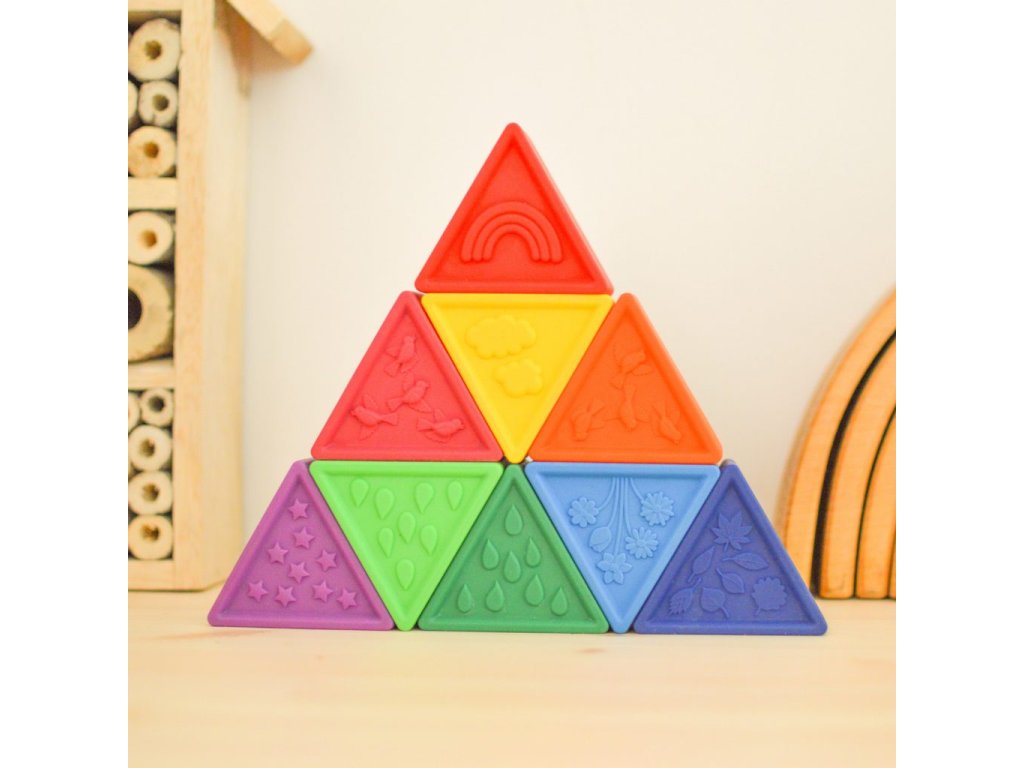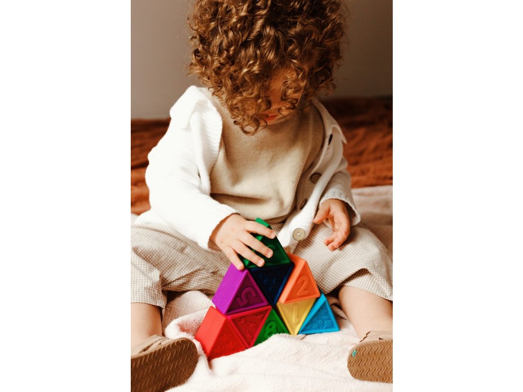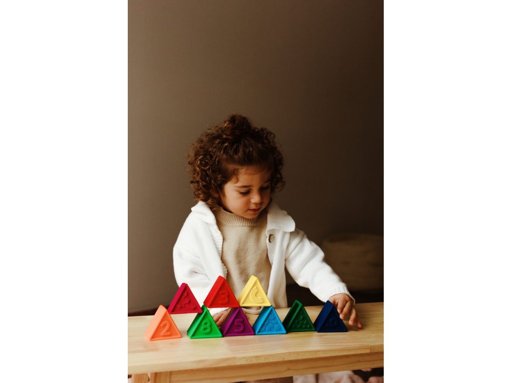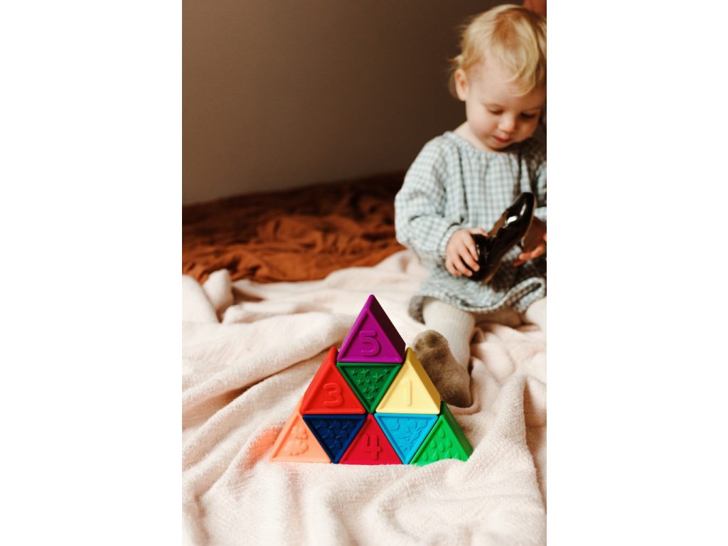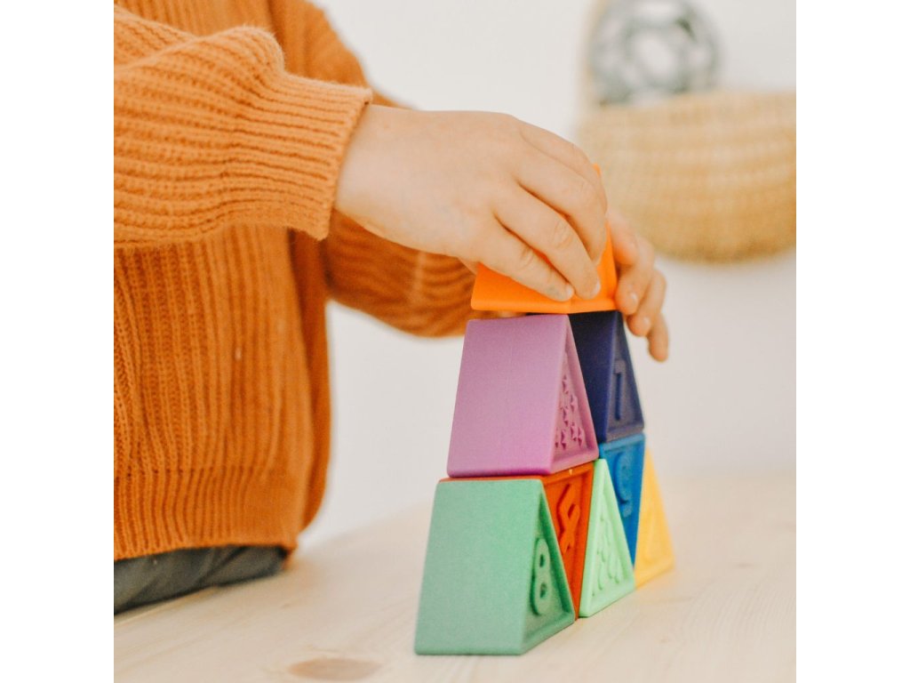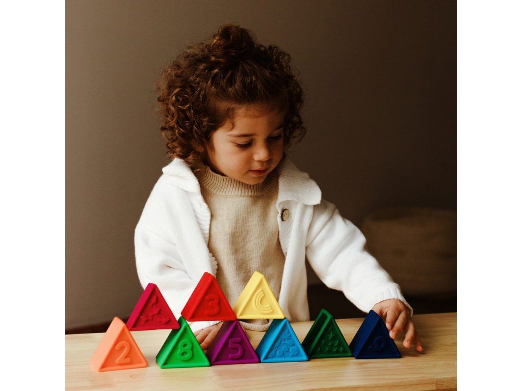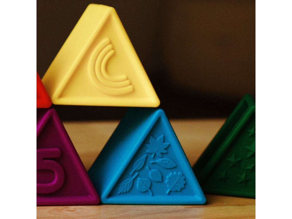 Představujeme Triblox od Jellystone Designs! 9 trojúhelníkových bloků vyrobených z netoxického silikonu, které mohou používat nejmenší děti ke stavění, skládání a učení. Každý barevný blok obsahuje číslo a odpovídající obrázek na druhé straně pro další příležitosti k učení. Triblox je pro malé děti skvělý způsob, jak nasměrovat svou vlastní kreativitu a řídit svou vlastní hru!