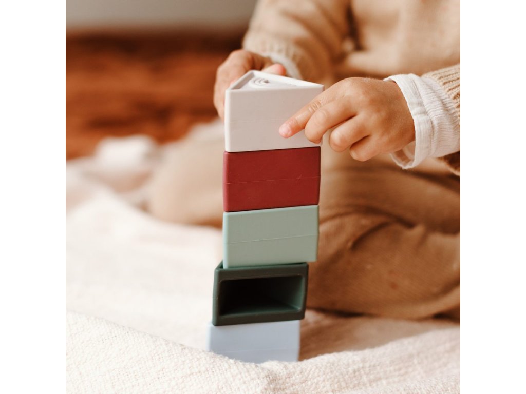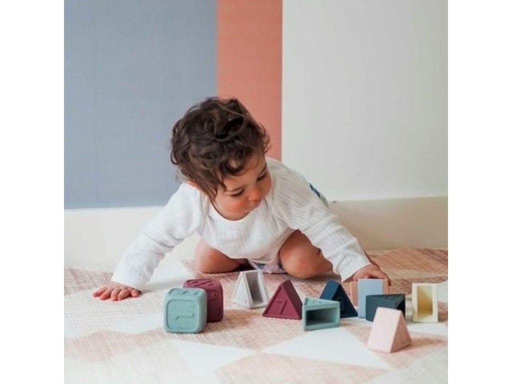 Perfektní tvar a hmotnost pro malé ručičky k prozkoumávání, seřazování, vyvažování a stohování. Bloky mají dotykové povrchy, které lze promačkávat.
