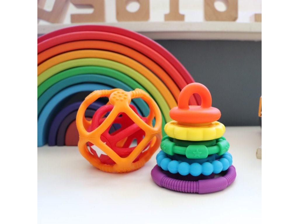Skládací pyramida s kousátky, duhová