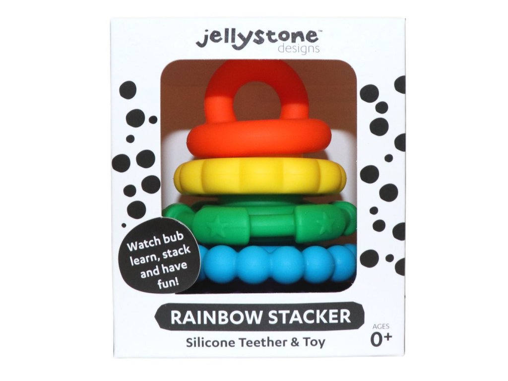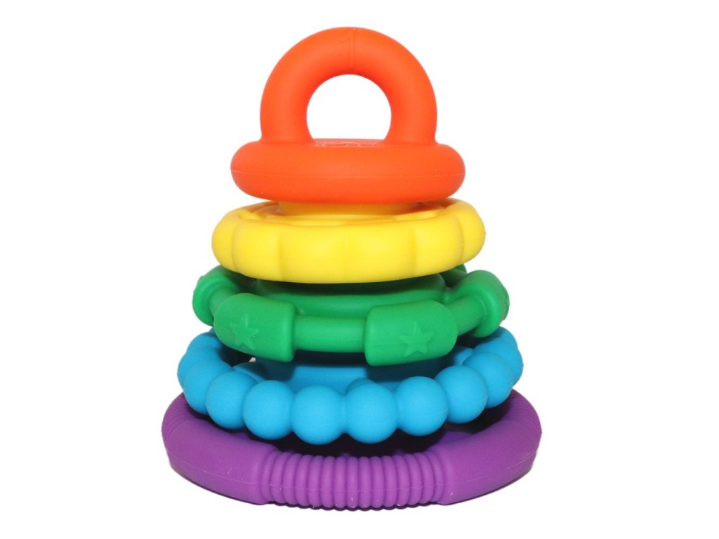 Barevná pyramida od Jellystone Designs je dokonalá víceúčelová hračka, protože vaše dítě rychle zjistí, že stohovací kroužky nejsou nic jiného než tolik oblíbená a praktická kousátka.