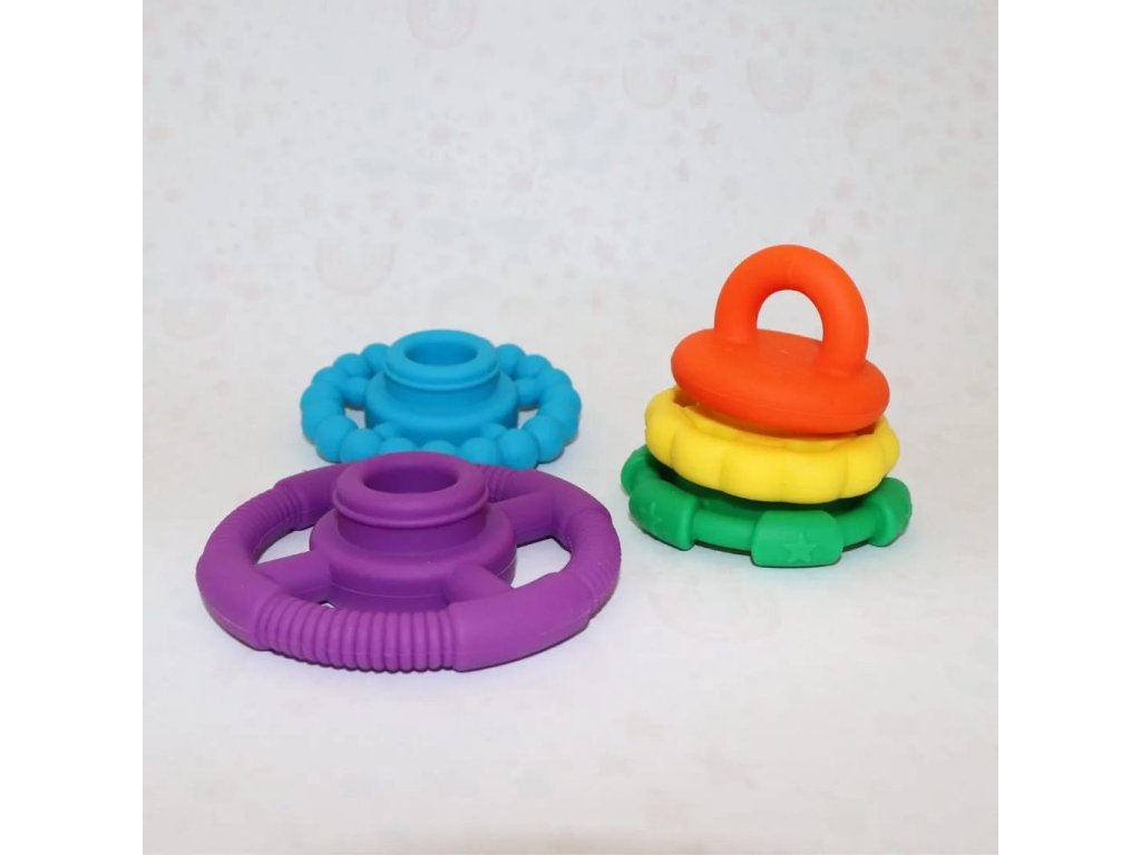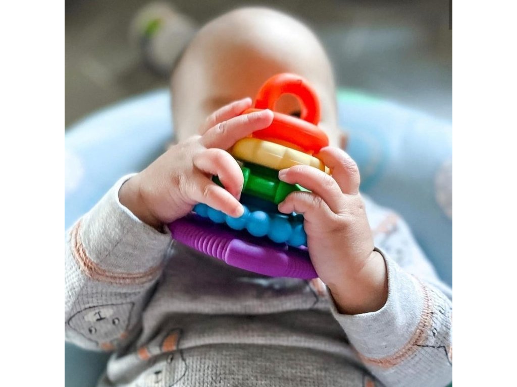 Miminka milují žvýkání uklidňujících silikonových kroužků a starší děti si díky nim procvičují koordinaci ruka-oko skládáním kroužků, kreativním myšlením a dovednostmi při řešení problémů k tomu, aby pyramidu znovu složily do původního stavu.