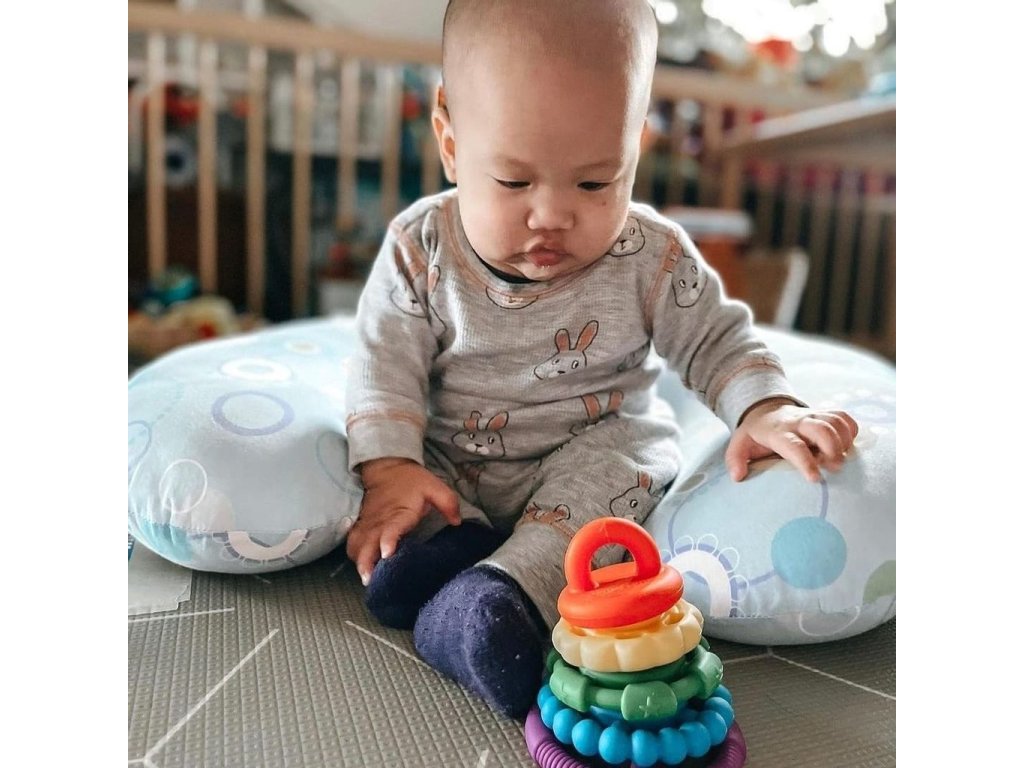 Barevná pyramida z kousátek vnese do každého dne vašeho miminka veselí a zábavu.