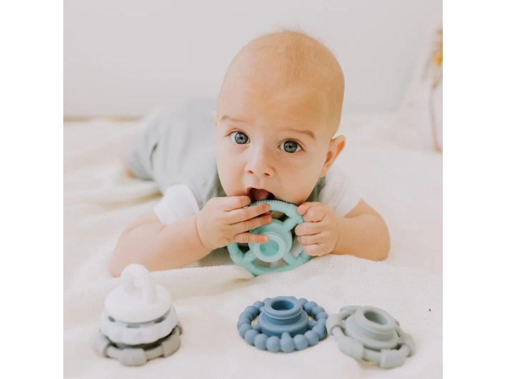 Barevná pyramida od Jellystone Designs je dokonalá víceúčelová hračka, protože vaše dítě rychle zjistí, že stohovací kroužky nejsou nic jiného než tolik oblíbená a praktická kousátka.