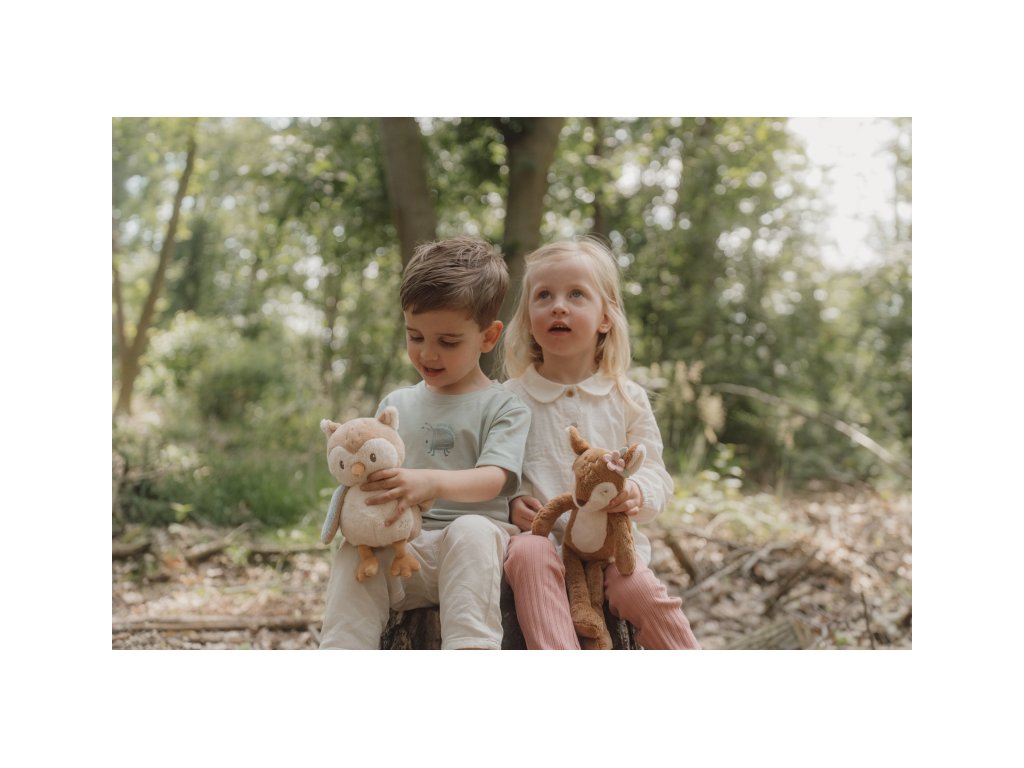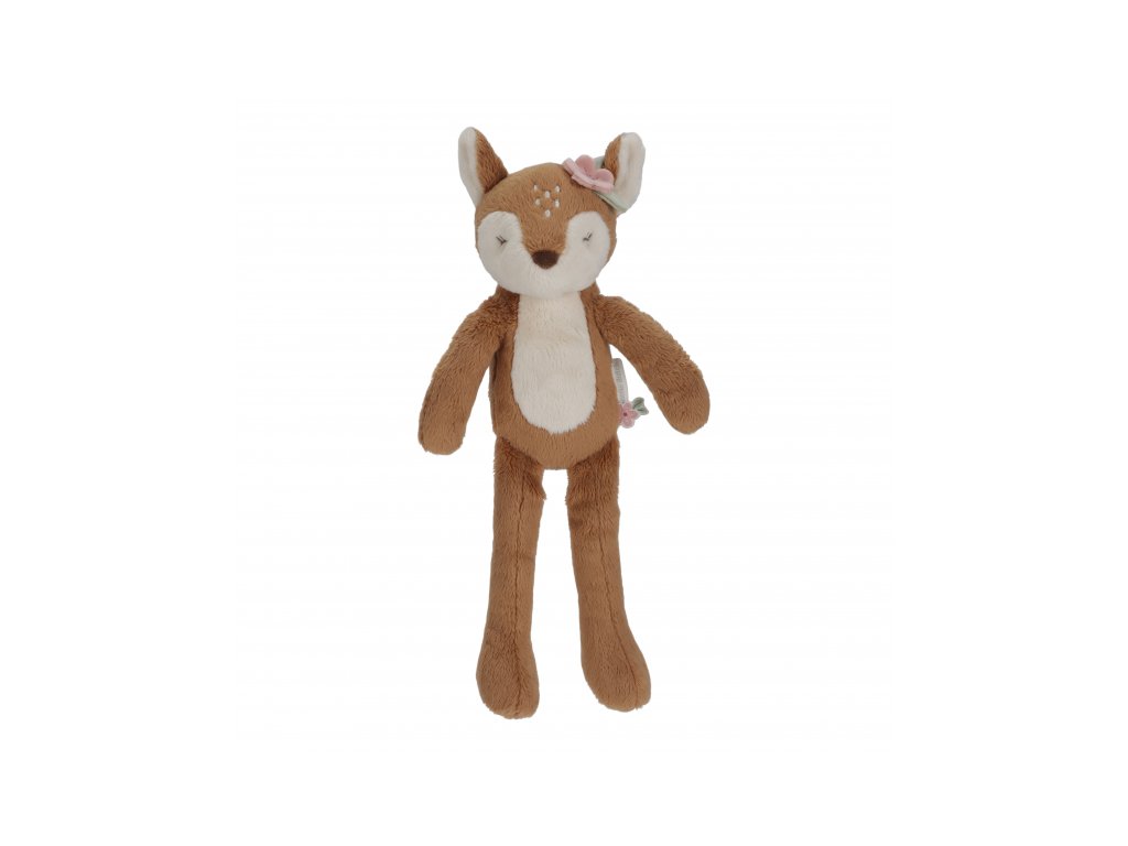 Něžná plyšová srnka je ideální jako mazlík do postýlky pro lepší usínání vašeho dítěte. Srnka umí i sedět a může se tak stát i krásnou dekorací v dětském pokojit. Hračka je součástí designové kolekce hraček a doplňků Little Dutch Fairy Garden inspirované životem na zahradě. Rozměry: 23 x 8 x 33 cm Vhodné pro děti od narození.