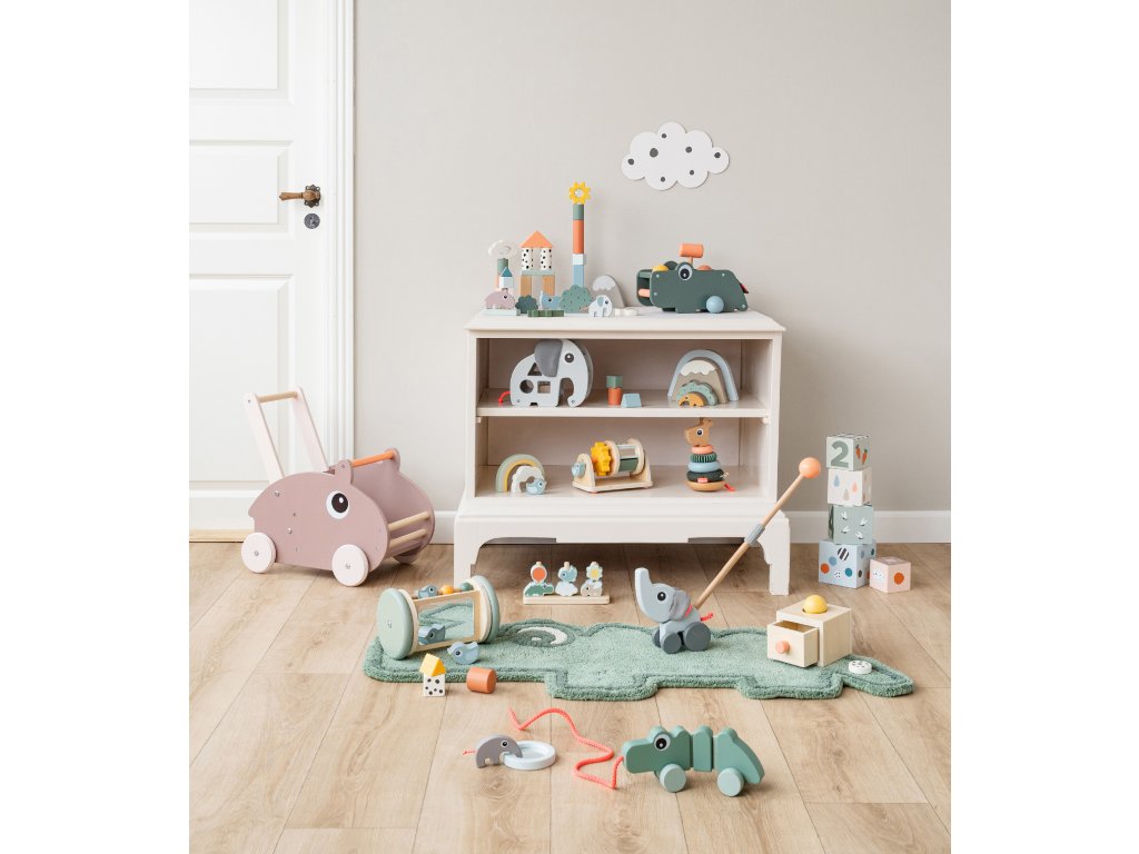 5 stohovacích kostek v řadě velikostí od 7x7 cm do 13x13 cm a v mixu jemných barev. Nechte své dítě bavit se skládáním kostek do výšky, překlápěním nebo schováváním malých věcí dovnitř.