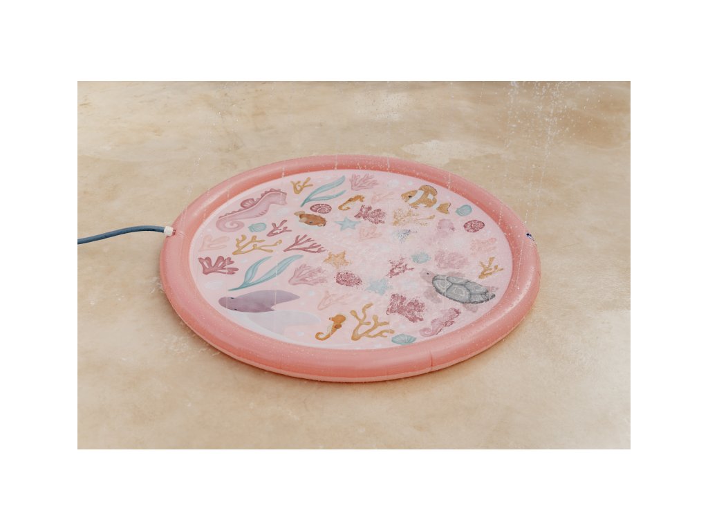 Originální hrací podložka s vodotryskem, který vytvoříte jednoduše připojením na zahradní hadici s pomocí přiložené spojky. Podložka s krásným potiskem motivů ze života pod mořskou hladinou je ideální doplněk na zahradu během horkých letních dní. Děti si budou užívat běhání přes stříkající vodotrysk i hraní si s vodou na podložce, která funguje jako mělký bazének. Podložka je součástí designové kolekce Little Dutch Ocean Dreams. Průměr: 150 cm Vhodné pro děti od 2 let.