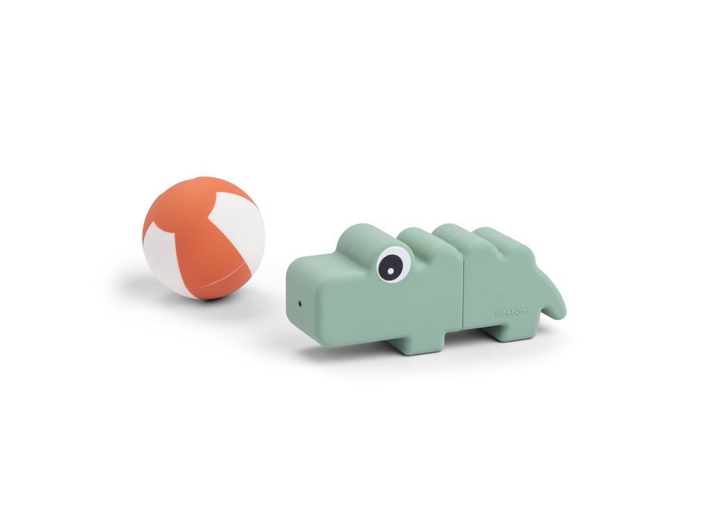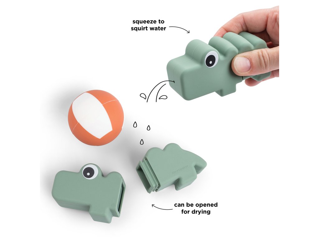 Bavte se s našimi vodními hračkami. Tato sada obsahuje silikonový míček a silikonového Croca, který stříká vodu. Užijte si zážitky a trénujte jemné motorické dovednosti prostřednictvím této promyšleně navržené sady, která poskytuje okamžiky nápaditých a zábavných vodních aktivit s naším milým Crocem.