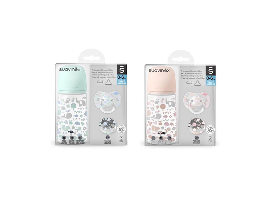 Suavinex - Sada láhev 270ml + dudlík fyziologický 0-6m+ klip - MEMORIES