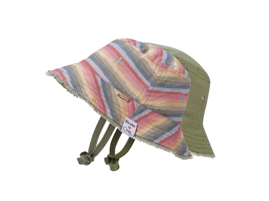 Krásný a pohodlný klobouček ochrání vaše dítko před sluníčkem. Klobouček má široký okraj, který se dá ohrnout a šňůrky na zavázání pod krkem. Klobouček má UV filtr 30. Klobouček je oboustranný.