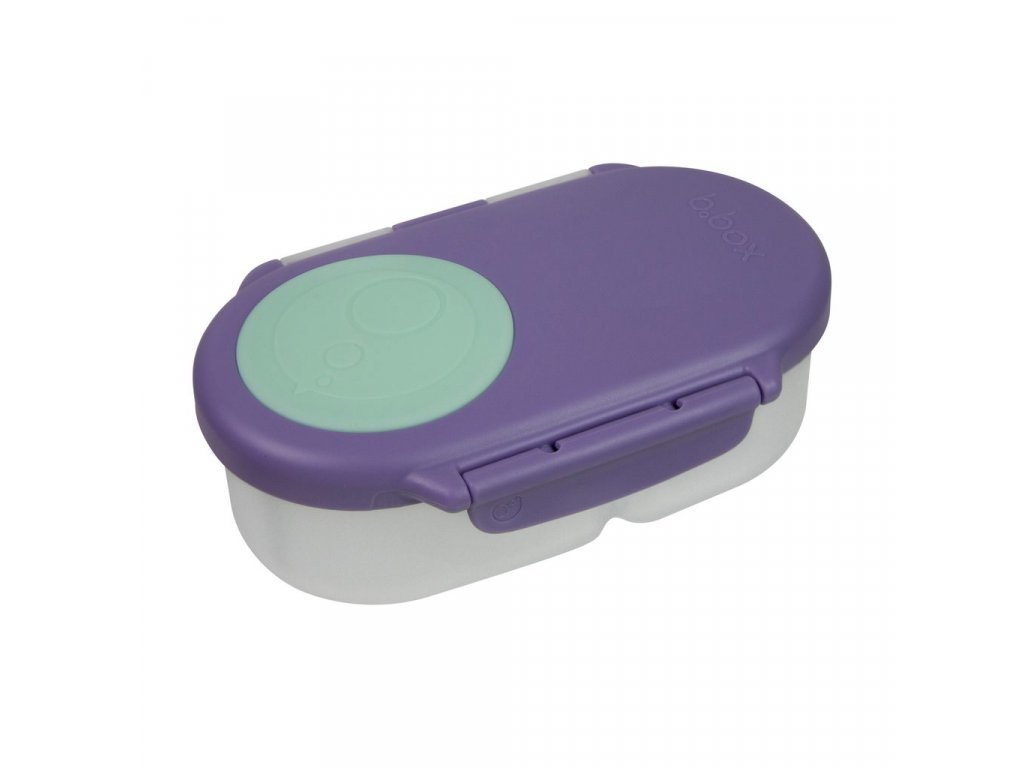 Svačinový box od b.box vám zjednoduší a zpříjemní čas na svačinu nebo přesnídávku. Díky jeho velikosti ho můžete vzít prakticky kamkoliv a být tak vždy vyzbrojení až na bříška zaútočí hlad. Díky flexibilnímu víčku na jedné straně můžete do krabičky vložit celý kus ovoce a do druhé třeba i jogurt nebo pyré. Je vhodný i do mrazáku.