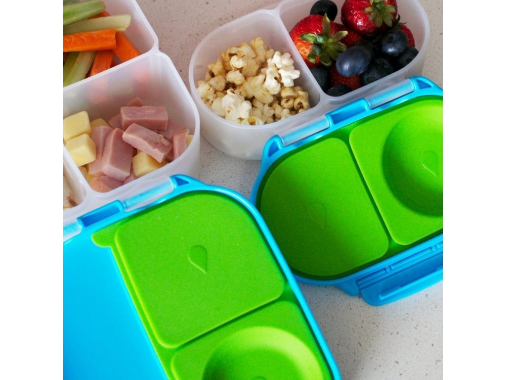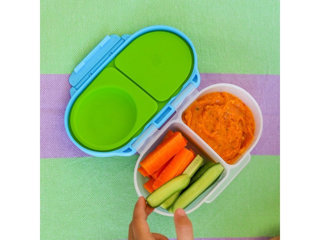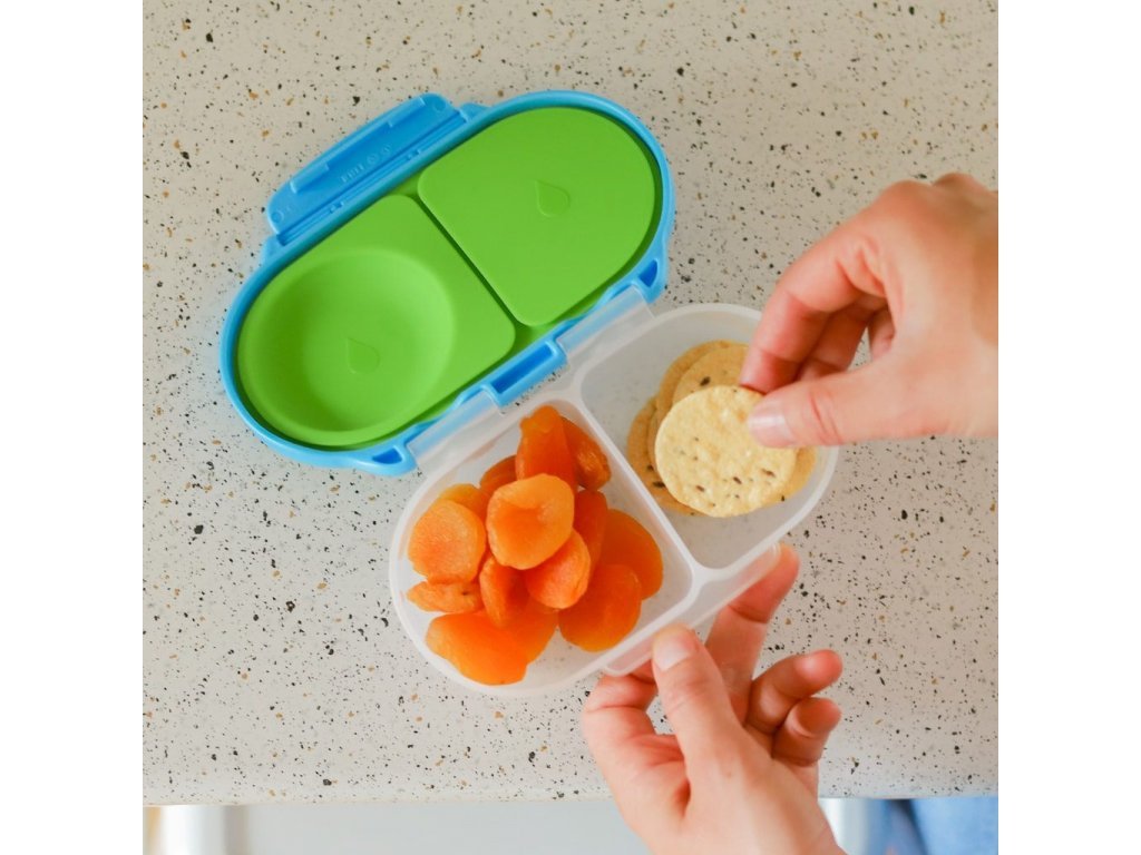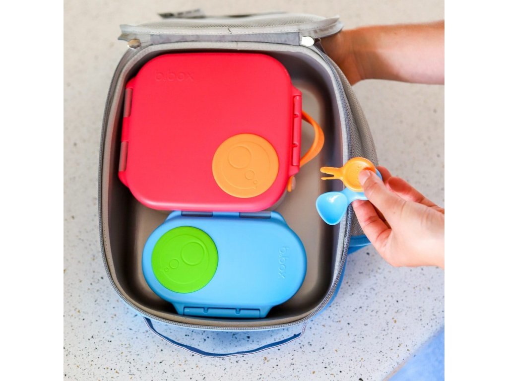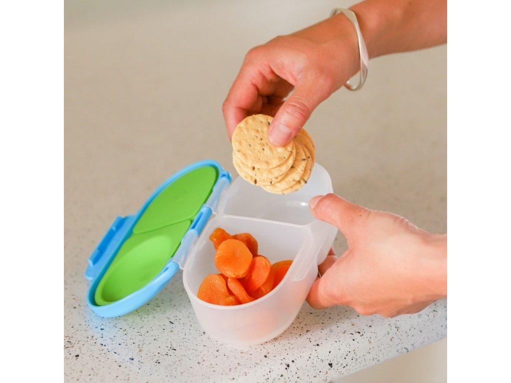 Svačinový box od b.box vám zjednoduší a zpříjemní čas na svačinu nebo přesnídávku. Díky jeho velikosti ho můžete vzít prakticky kamkoliv a být tak vždy vyzbrojení až na bříška zaútočí hlad. Díky flexibilnímu víčku na jedné straně můžete do krabičky vložit celý kus ovoce a do druhé třeba i jogurt nebo pyré. Je vhodný i do mrazáku.