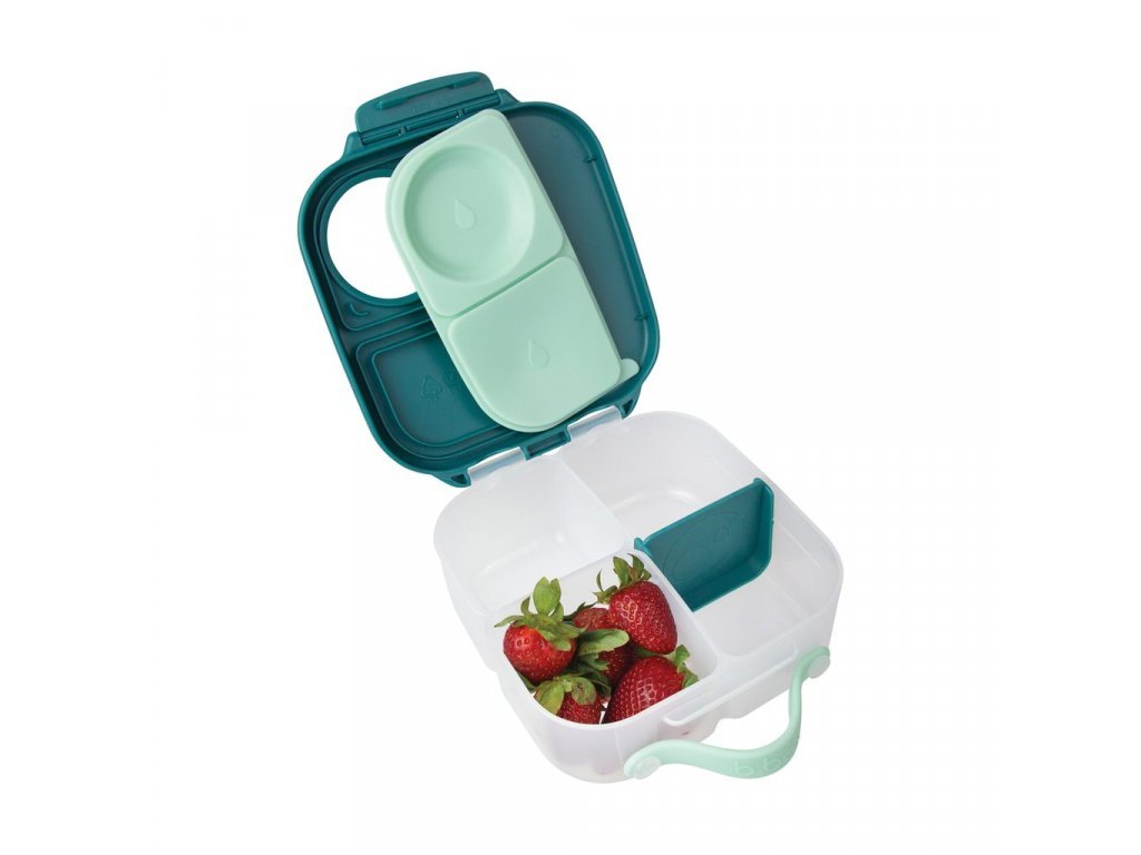 Všechny věci, které milujete na velkém svačinovém boxu od b.box najdete nyní i v menší verzi! Krabička na svačinu, do které se vejde úplně všechno. b.box navrhl variabilní lunchbox, do kterého zabalíte nespočet různých druhů svačinek. Najdete zde oddělení pro ovoce, zeleninu, nebo na čtvrtky nakrájený toast. Naprosto jedinečné zpracování víčka krabičky s elastickým kroužkem umožní vložit do krabičky celé jablko! Silikonové dvojité víčko pak dovolí skladovat v menších odděleních jogurt nebo dip (nikoli tekutiny). Některé vnitřní "přepážky" jsou vyjímatelné a nastavitelné, takže si tento svačinový box přestavíte podle svých chutí a potřeb. Do lunchboxu se vejde například i wrap nebo banán, je jen na vás, co dítěti do tohoto svačinového boxu zabalíte :-). Jednoduché otevírání umožní dětem samostatně se obsloužit.
