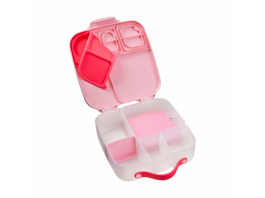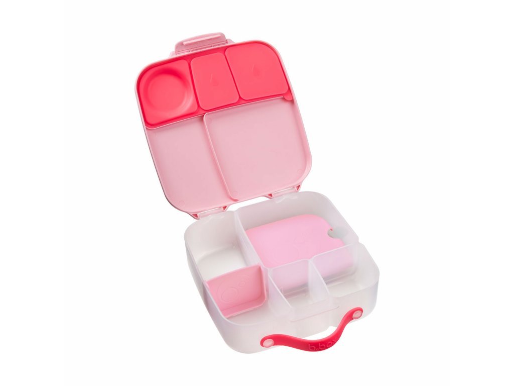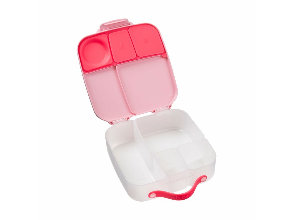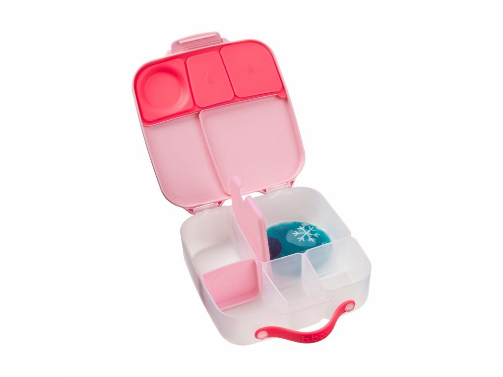 Krabička na svačinu, do které se vejde úplně všechno! Děti si během dne rády vybírají z dobrot, které jim připravíte. A tak b.box navrhl variabilní lunchbox, do kterého zabalíte nespočet různých druhů svačinek. Najdete zde oddělení pro půl krajíce chleba nebo sendvič, pod pohyblivým víčkem je ukrytý chladivý polštářek, který udrží tuto dobrotu déle čerstvou. Pokud pohyblivé víčko odstraníte, máte rázem dostatečně velký prostor pro těstoviny nebo salát. Naprosto jedinečné zpracování víčka krabičky s elastickým kroužkem umožní vložit do krabičky celé jablko! Silikonové dvojité víčko pak umožní skladovat v menších odděleních ovoce nebo jogurt (nikoli tekutity). Některé vitřní "přepážky" jsou vyjímatelné a nastavitelné, takže si tento svačinový box přestavíte podle svých chutí a potřeb. Do lunchboxu se vejde i wrap nebo banán.