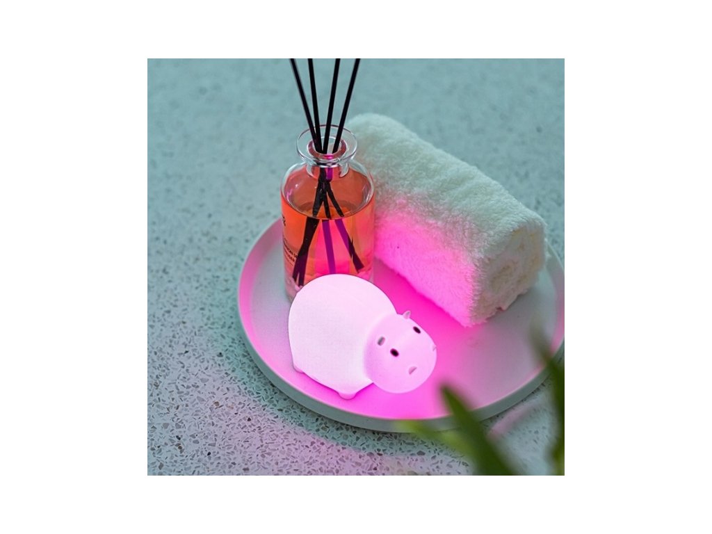 Světlo do vany MegaLight Swimmy Hippo v podobě roztomilého hrocha poskytne vašemu dítěti zábavu během koupání ve vaně. Díky svému designu bude i krásnou dekorací v dětském pokoji. LED světlo s nabíjecí baterií 7 RGB barev snadné ovládání dotykem automatické vypnutí po 5 minutách bez doteku životnost baterie 25 hodin nabíjení s pomocí přiloženého USB-C kabelu testováno v souladu se směrnicemi o hračkách Složení: ABS, polykarbonát, silikon Rozměry: 107 x 71 x 68 mm Vhodné pro děti od 3 let.