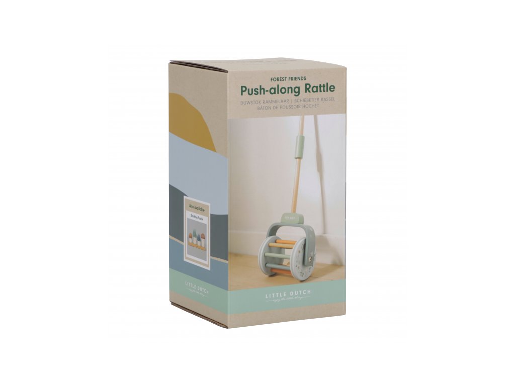 Dřevěný chrasticí váleček na tyči v krásném dřevěném provedení láká dítě, aby jej tlačilo před sebou. Míčky uvnitř válečku při pohybu chrastí, dítě je motivováno k samostatné chůzi a zároveň mu držení hračky dodává při chůzi pocit větší jistoty. Gumové proužky na obvodu válečku chrání podlahu před poškrábáním. Hračka je součástí designové kolekce hraček a doplňků Little Dutch Forest Friends inspirované životem v lese. Vyrobeno z dřeva certifikovaného FSC. Rozměry: 15,5 x 10 x 59 cm Vhodné pro děti od 18 měsíců.