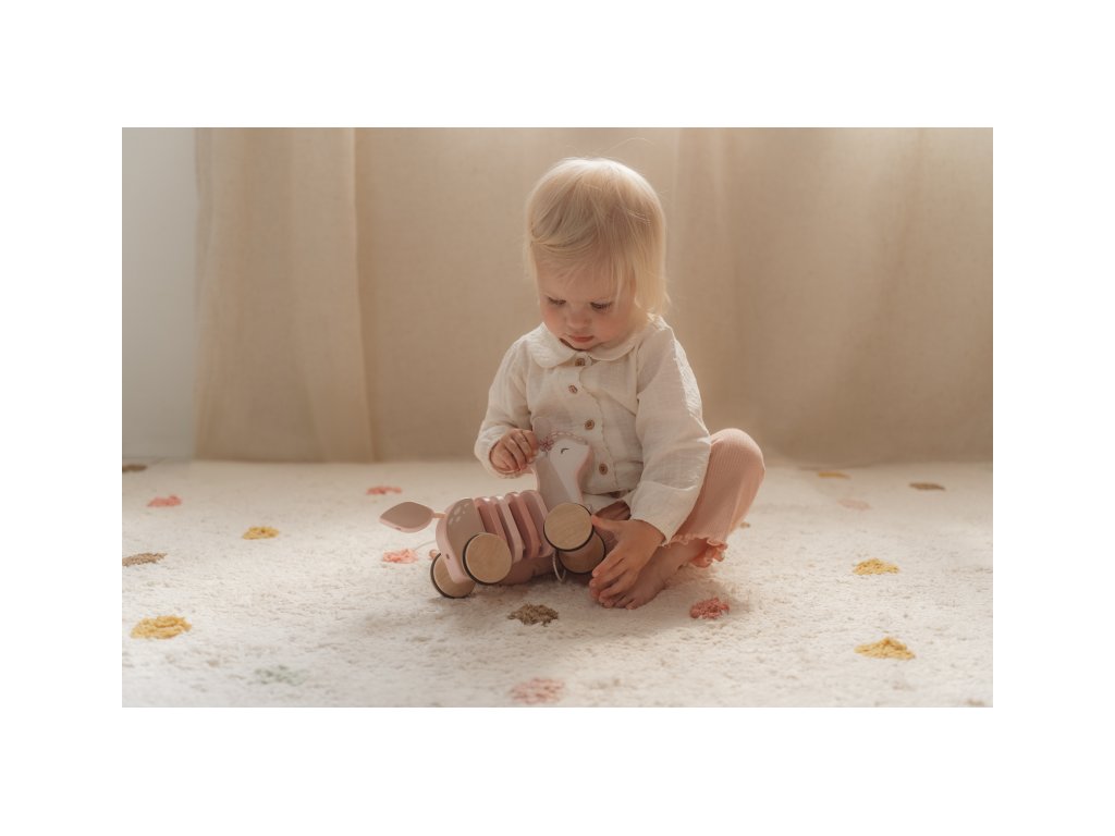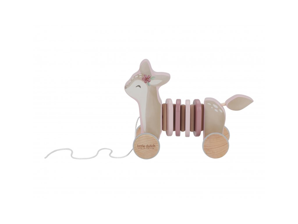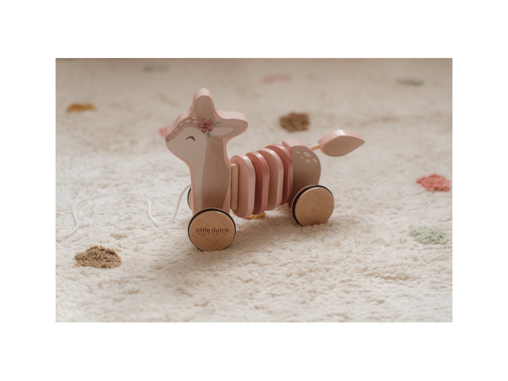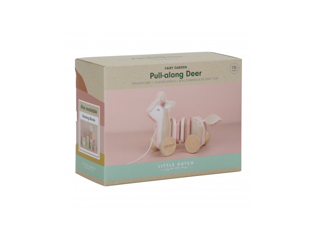 Srnka na kolečkách v krásném dřevěném provedení má šňůrku, aby ji dítě mohlo tahat za sebou. Hračka je součástí designové kolekce hraček a doplňků Little Dutch Fairy Garden inspirované životem na zahradě. Vyrobeno z dřeva certifikovaného FSC. Rozměry: 24 x 9,7 x 17,7 cm Vhodné pro děti od 12 měsíců.