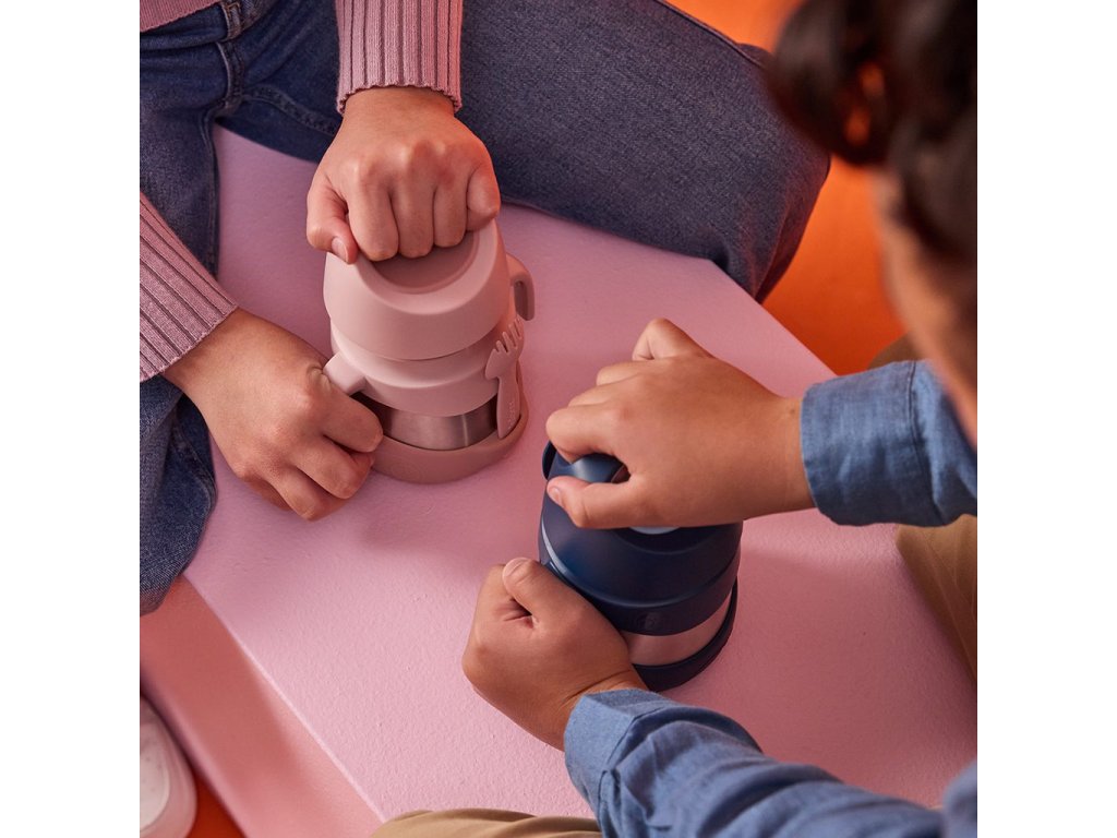 Široké hrdlo termosky umožní, aby malé ručičky dosáhly na poslední sousto na dně. Na víčku je "ouško", za které je možné termosku nosit nebo zavěsit na karabinu. Kromě toho je toto "ouško" skvělé i pro slabé nebo malé ruce - vložením prstů do otvoru a pootočením lze využít "páky" a tak je otevření snadné jak pro děti, tak i pro starší lidi. Ucha po stranách termosky i kryt chránící dno termosky z venku jsou odnímatelné. K termosce je možné dokoupit náhradní vidličko-lžičku.