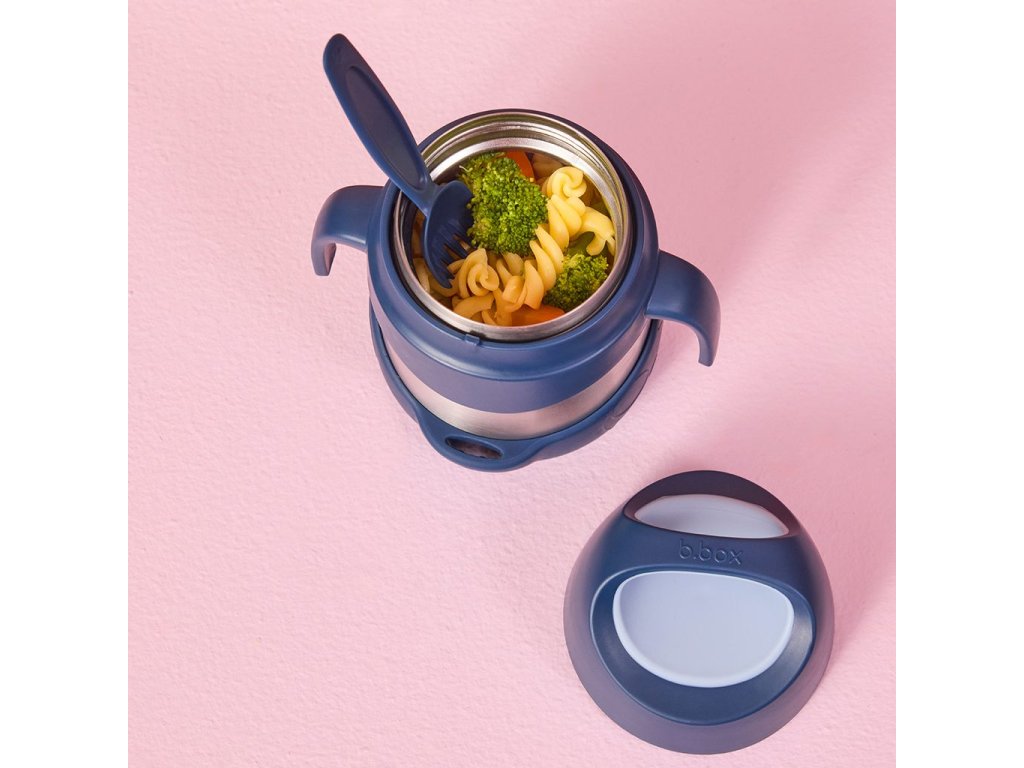 Dvouplášťová termoska australské značky b.box je nezbytným doplňkem na oběd či svačinu na cestách, ve škole či v práci.