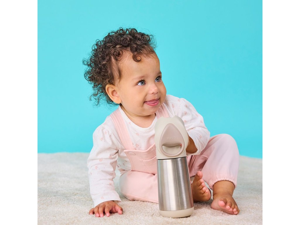 Dvouvrstvá nerezová ocel udrží tekutiny studené až 8 hodin a teplé až 6 hodin. Termoska se po snadném zmáčknutí "tlačítka" lehce otevře. Silikonové brčko je skvělou volbou i menší děti a jednoduše se čistí. Víčko termosky má držátko pro snadné nošení nebo zavěšení na batoh, kočárek apod.