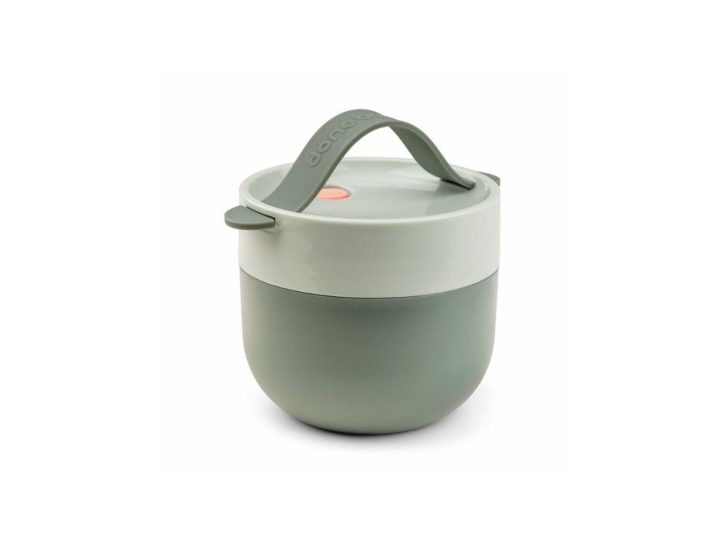 Miska na oběd má čistý design v moderních barvách. Šroubovací víko udrží dobroty uvnitř. Odnímatelná silikonová rukojeť usnadňuje přenášení misky i malým ručkám.