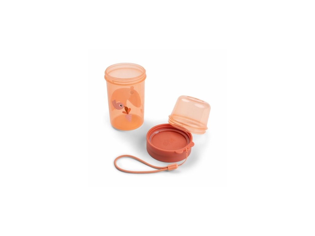 Umožněte Lalee udržet Vaše jídlo čerstvé a křupavé díky této velké dvoucestné nádobě na svačinu. Vezměte si s sebou dvě různé svačiny ve stejné nepropustné nádobě, abyste si rozveselili den. Je ideální na víkendový piknik nebo na oběd v předškolním zařízení i mimo něj. Použijte spodní polovinu vzduchotěsné nádoby na zeleninové tyčinky nebo kousky ovoce a horní polovinu na dipy nebo bobule. Nádoba je dodávána s praktickým popruhem a je vhodná do mikrovlnné trouby a myčky. Zabalte si lahodnou svačinku k obědu a nechte naše jelení kamarády hlídat. Na přední straně této pískově zbarvené nádoby si Lalee pochutnává na hruškách a na zadní straně Birdee odlétá s čerstvě natrhanou mrkví.
