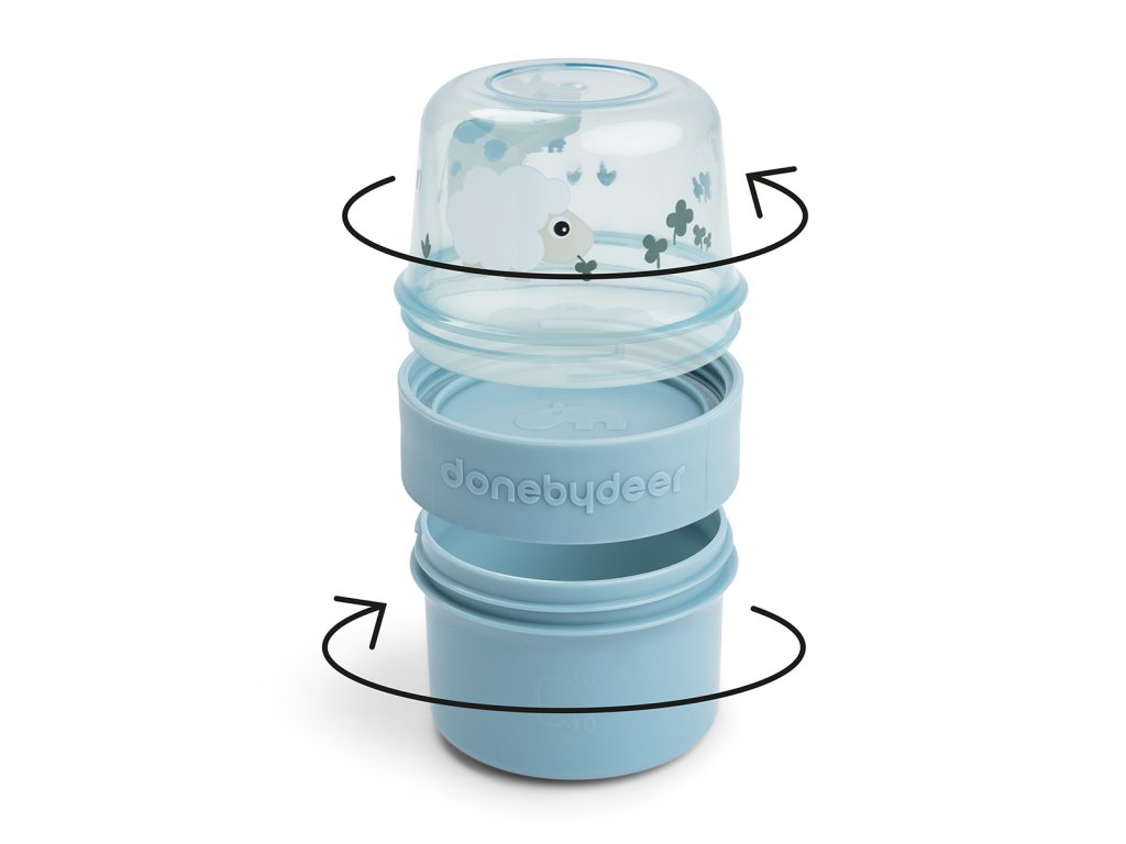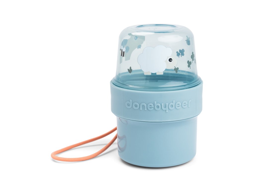 Nechte Dotti a Sheepy udržet Vaše jídlo čerstvé a křupavé díky této malé nádobě na svačinu. Vezměte si s sebou dvě různé svačiny ve stejné nepropustné nádobě, abyste si rozveselili den. Ideální na víkendový piknik nebo na svačiny během dne v předškolním zařízení i mimo něj. Použijte spodní polovinu vzduchotěsné nádoby na jogurt, krekry nebo ořechy a horní polovinu na granolu, dip nebo ovoce. Nádoba je dodávána s praktickým popruhem a je vhodná do mikrovlnné trouby a myčky. Tento zásobník má po celém obvodu roztomilý potisk ovečky a kravičky.