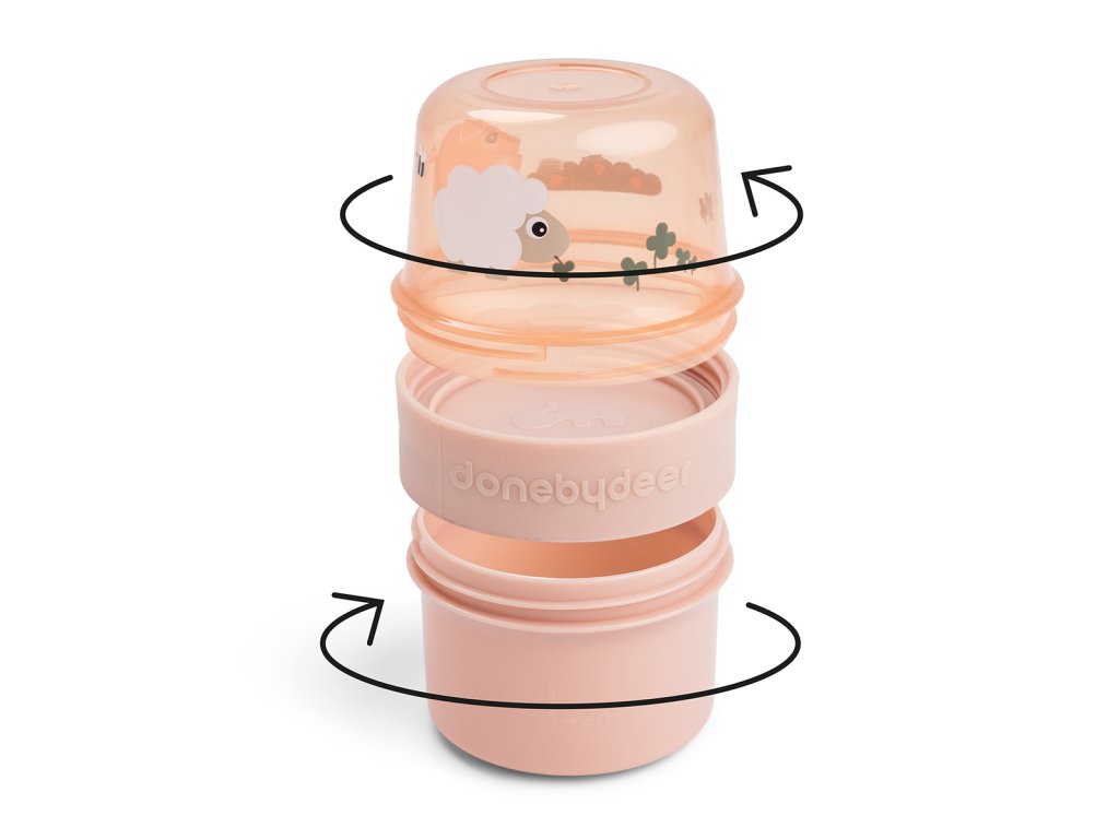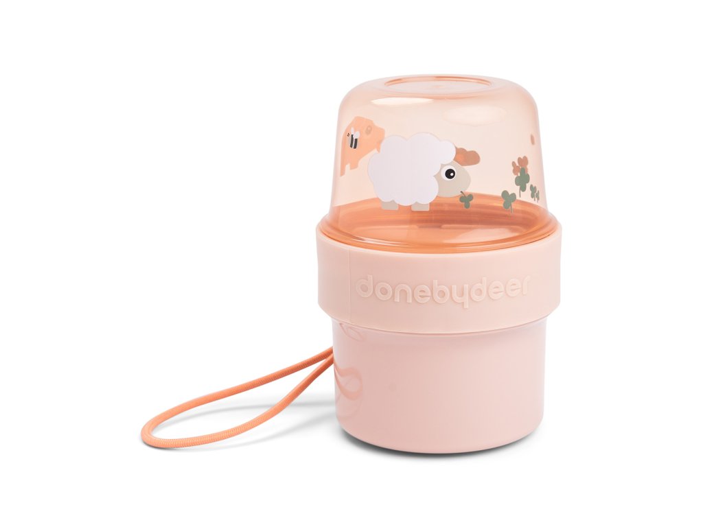 Nechte Pigee a Sheepy udržet Vaše jídlo čerstvé a křupavé díky této malé nádobě na svačinu. Vezměte si s sebou dvě různé svačiny ve stejné nepropustné nádobě, abyste si rozveselili den. Ideální na víkendový piknik nebo na svačiny během dne v předškolním zařízení i mimo něj. Použijte spodní polovinu vzduchotěsné nádoby na jogurt, krekry nebo ořechy a horní polovinu na granolu, dip nebo ovoce. Nádoba je dodávána s praktickým popruhem a je vhodná do mikrovlnné trouby a myčky. Tento zásobník má po celém obvodu roztomilý potisk ovečky a prasátka.