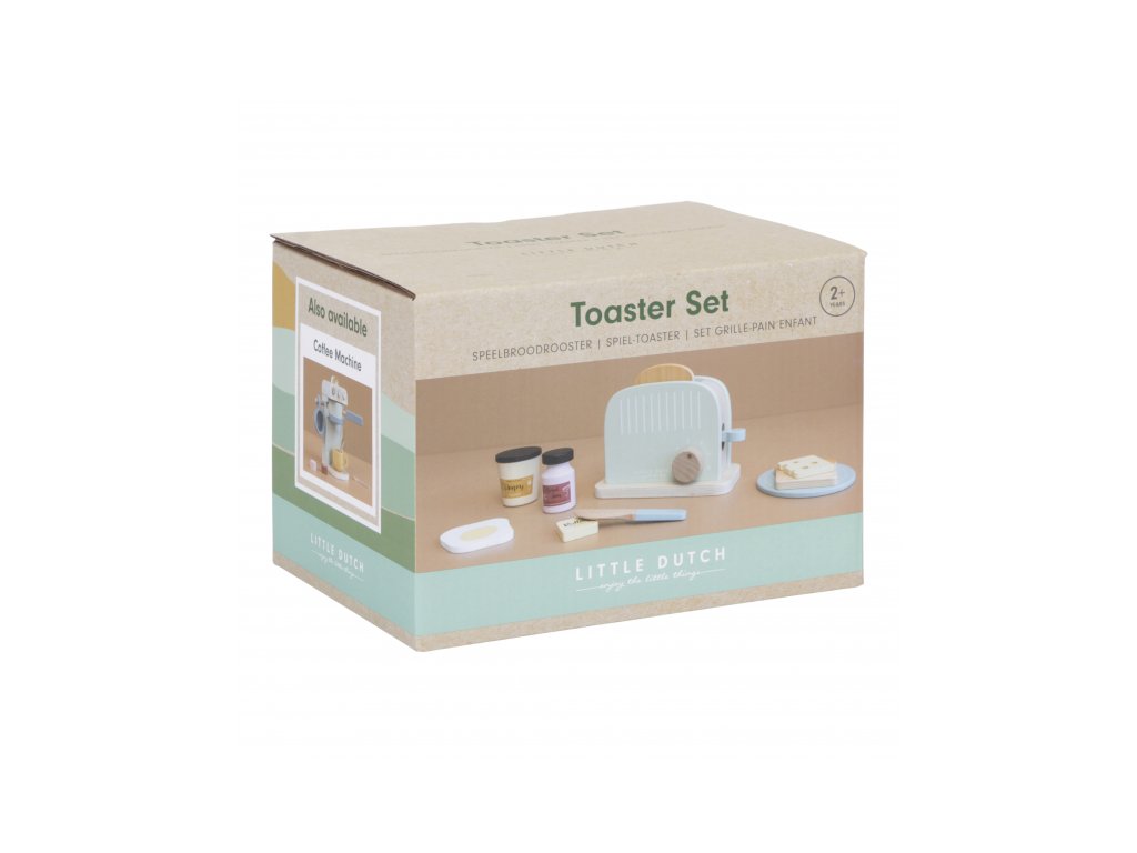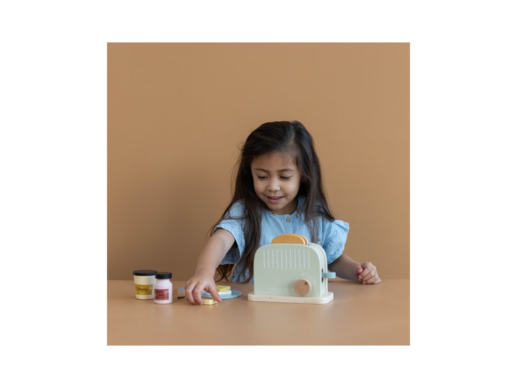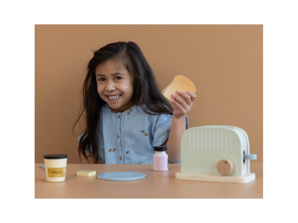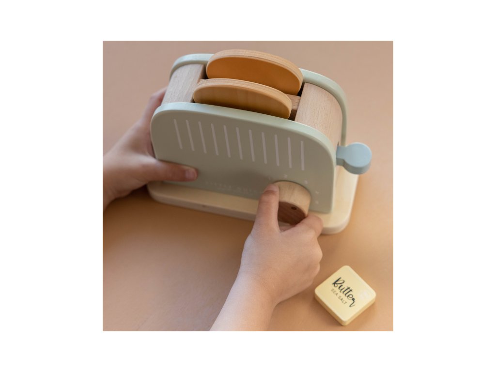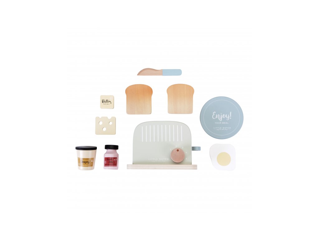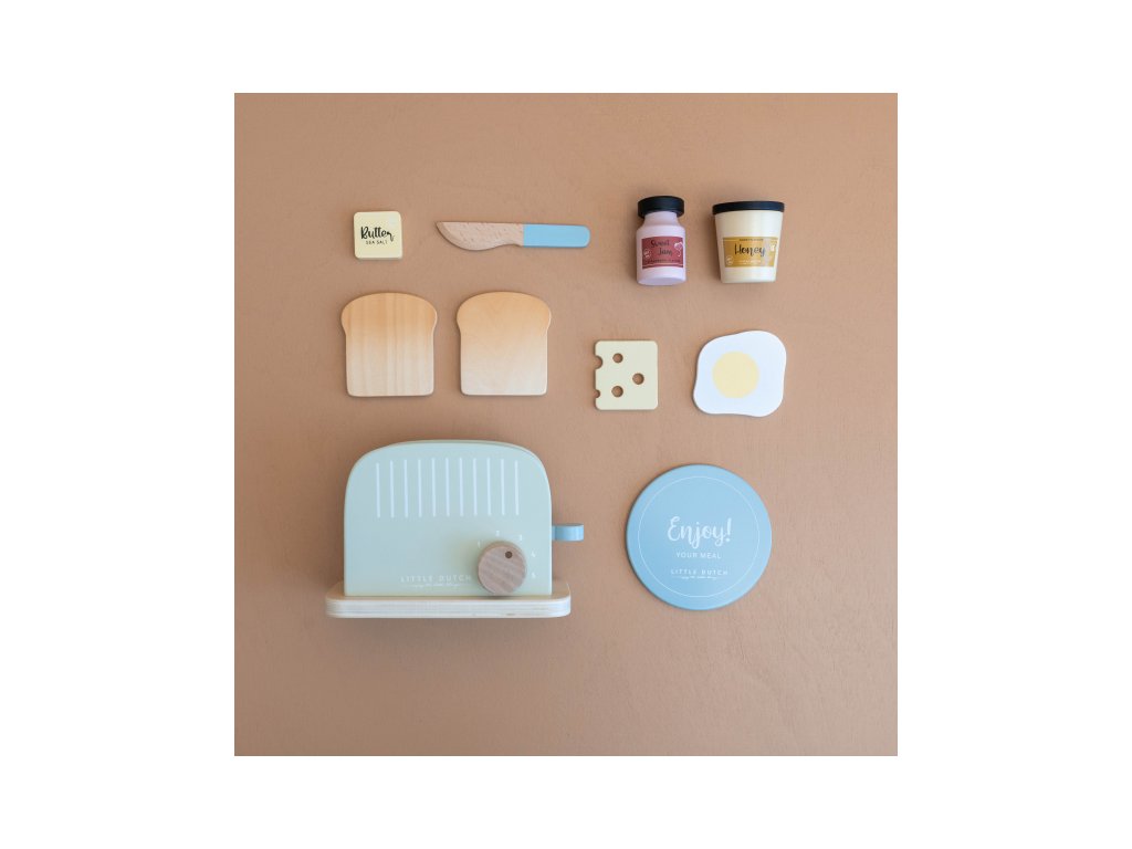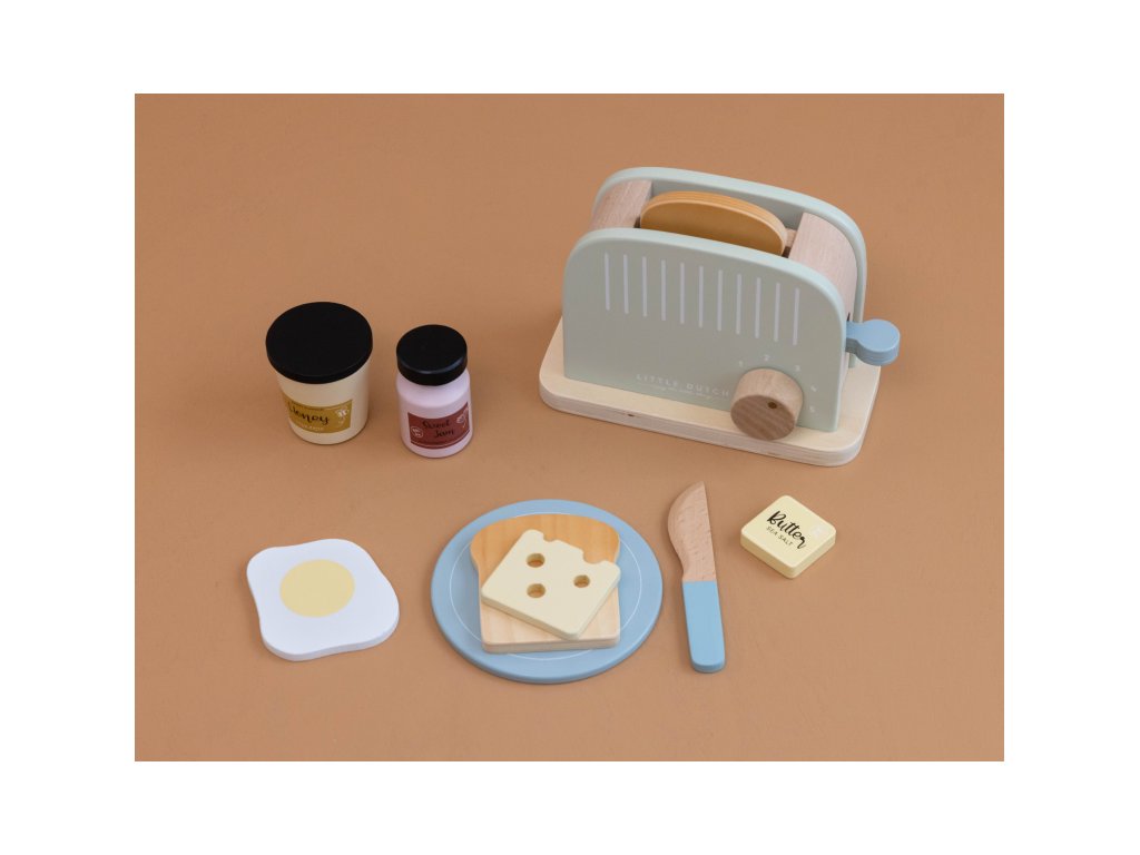 Toastovač v krásném dřevěném provedení je nezbytným doplňkem každé dětské kuchyňky. Nechte si od vašeho dítěte připravit výborný toast se sýrem! Balení obsahuje dřevěný toastovač, talíř, nůž, dva plátky toastového chleba, máslo, plátek sýra, smažené vejce a skleničky medu a marmelády. Rozměry: 18 x 8 x 18 cm Vhodné pro děti od 2 let.Doplňkové parametry