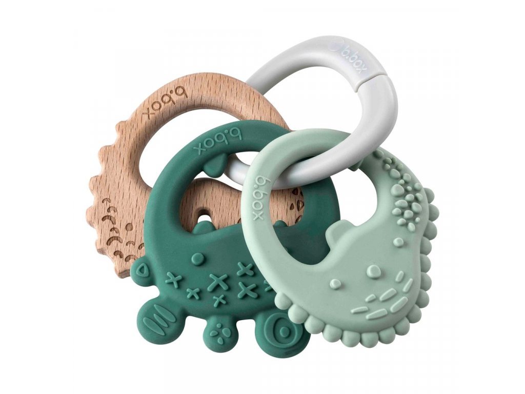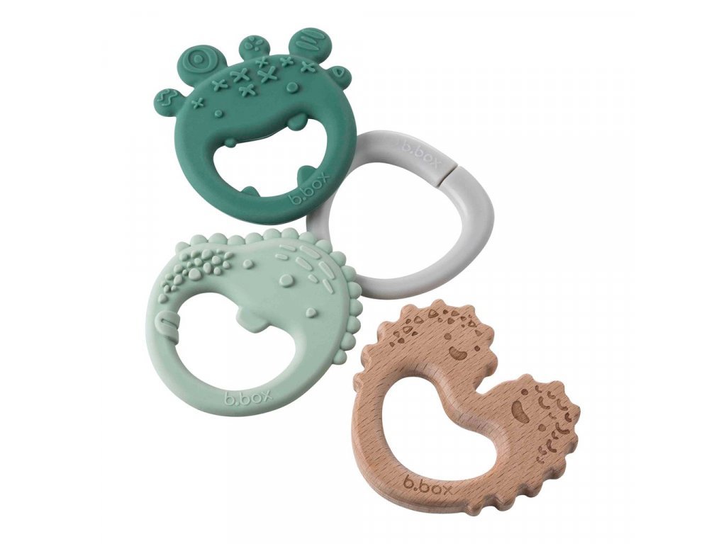 Představujeme vám b.box Trio kousátko, které uleví bolavým dásním a zároveň stimuluje senzorické schopnosti. Tři texturovaná kousátka na šikovném kroužku nabízí dítěti výběr mezi dvěmi silikonovými kousátky a dřevěným kousátkem. Kousátka jsou lehká a velmi dobře padnou do dětských ruček. Lze je používat samostatně nebo v setu na kroužku.