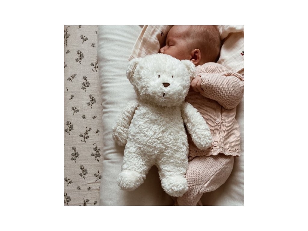 Moonie usínáček v podobě roztomilého medvídka s nočním světlem a relaxačními zvuky pomáhá miminku uklidnit se a snáze usnout. Uklidňující zvuky připomínají dítěti prostředí v děloze maminky před jeho narozením. Usínáček nabízí pět přírodních relaxačních zvuků (lůno matky, vítr, lesní potok, mořské vlny, déšť) a ukolébavku, složenou speciálně pro novorozence. Bříško medvěda svítí a slouží jako noční světlo s výběrem sedmi barev svícení. Jemné světlo pomáhá dítěti cítit se v postýlce bezpečně. Světlo je možné zapnout i bez zvuků a nechat jej svítit po celou noc. Medvěd se při svícení nijak nezahřívá a je pro dítě zcela bezpečný. Inteligentní senzor aktivuje zvuk a světlo, když dítě začne plakat. Hračka pak přehrává relaxační zvuky a jemně svítí po dobu 30 minut. Hračka se dobíjí s pomocí USB kabelu. Po vyjmutí zvukového a svítícího modulu můžete hračku prát v pračce. USB kabel je součástí balení. Medvídek je součástí produktové řady Moonie Organic, vyráběné z cetifikované organické bavlny, barvené netoxickými barvami. Bavlna pochází z produkce bez použití pesticidů a toxických hnojiv. Při pěstování organické bavlny se používá o 50% méně vody ve srovnání s průmyslovým pěstováním. Výplň hračky tvoří recyklovaný materiál. Hračka byla testována švýcarskou laboratoří SGS a je v souladu se směrnicí 2009/48/ES o bezpečnosti hraček. Rozměry: 28 x 16 x 10,5 cm Vhodné pro děti od narození.Doplňkové parametry
