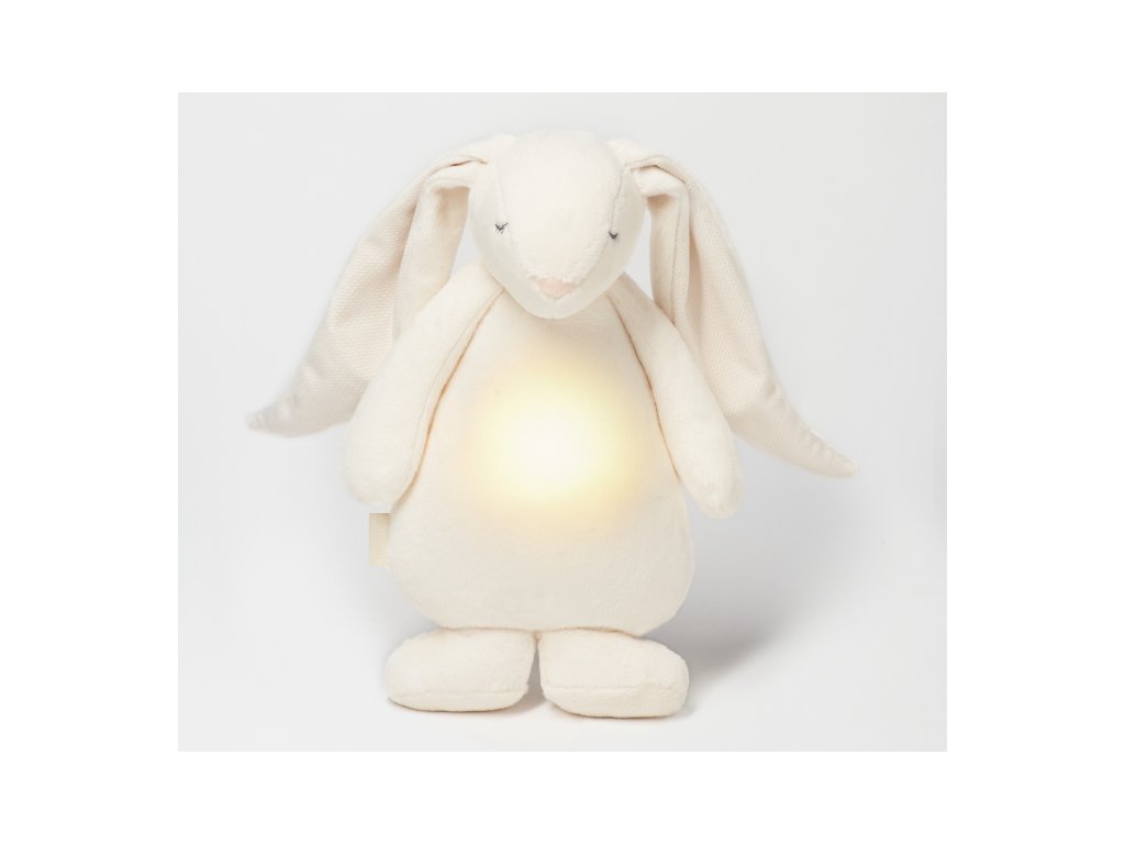 Moonie usínáček v podobě roztomilého zajíčka s nočním světlem a relaxačními zvuky pomáhá miminku uklidnit se a snáze usnout. Uklidňující zvuky připomínají dítěti prostředí v děloze maminky před jeho narozením. Usínáček nabízí pět přírodních relaxačních zvuků (tlukot srdce, vítr, lesní potok, mořské vlny, déšť), kalimba ukolébavku, dvě klasické ukolébavky a umožňuje nahrání vlastního hlasu. Bříško zajíčka svítí a slouží jako noční světlo s výběrem sedmi barev svícení. Jemné světlo pomáhá dítěti cítit se v postýlce bezpečně. Světlo je možné zapnout i bez zvuků. Při zapnuté funkci Shake světlo zapnete zatřesením hračkou. Zajíček se při svícení nijak nezahřívá a je pro dítě zcela bezpečný. Funkce časovače umožňuje nastavit dobu přehrávání na 30, 60 nebo 90 minut, než modul přejde do režimu inteligentního senzoru pláče. Inteligentní senzor aktivuje zvuk a světlo, když dítě začne plakat. Hračka pak přehrává relaxační zvuky a jemně svítí po dobu 20 minut. Hudební modul umožňuje nastavení hlasitosti a doby přehrávání dle vašich preferencí. Hračka se dobíjí s pomocí USB kabelu, k plnému nabití potřebuje 3 hodiny. Plně nabitá baterie vydrží až 8 hodin nepřetržitého provozu se zapnutým světlem a zvukem. USB kabel je součástí balení. Po vyjmutí zvukového a svítícího modulu můžete hračku prát v pračce. Moonie zajíček je vyroben z nejkvalitnějších, certifikovaných a bezpečných materiálů pro děti. Hračka byla testována švýcarskou laboratoří SGS a je v souladu se směrnicí 2009/48/ES o bezpečnosti hraček. Všechny materiály, ze kterých je zajíček MOONIE vyroben, jsou certifikovány OEKO-TEX a jsou super jemné a příjemné na dotek. Rozměry: 28 x 16 x 10,5 cm Vhodné pro děti od narození.