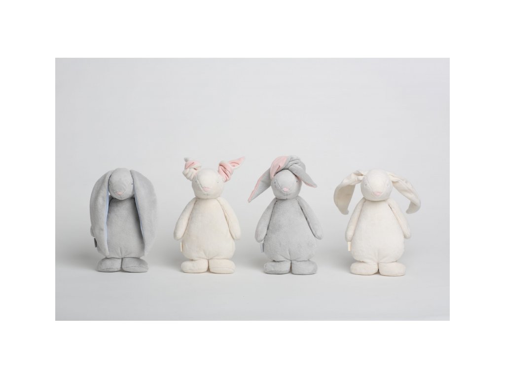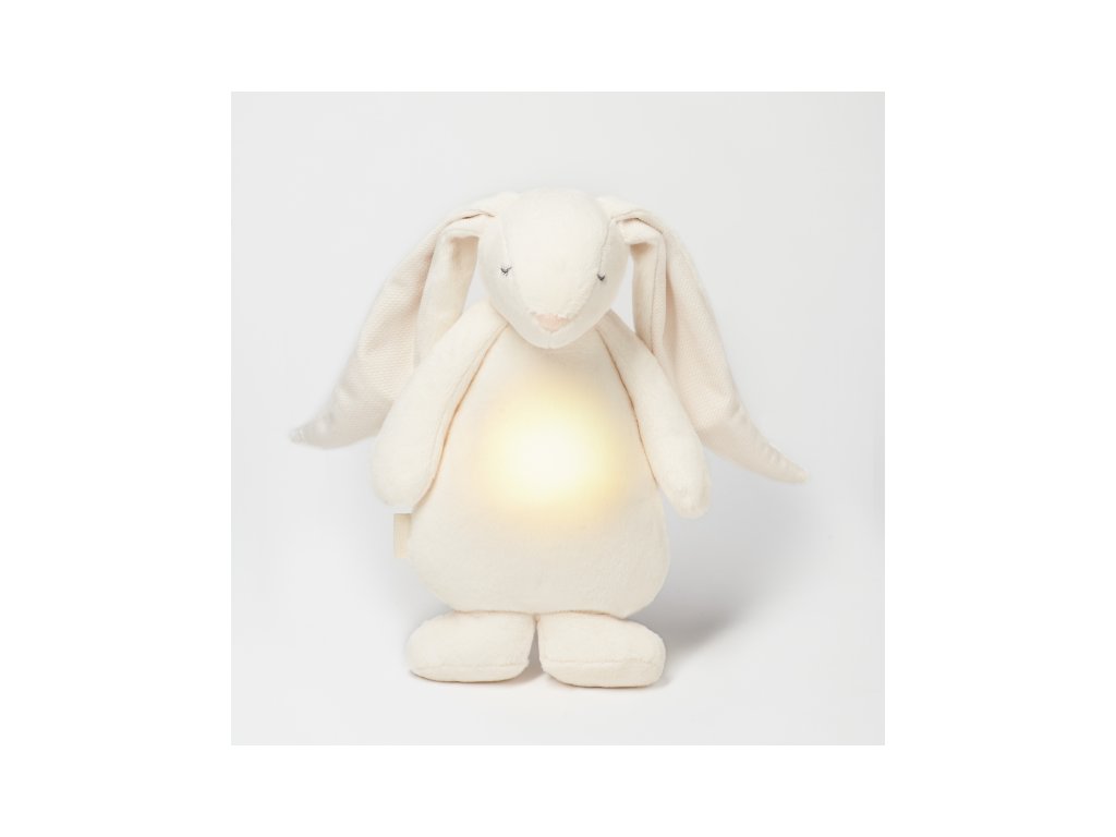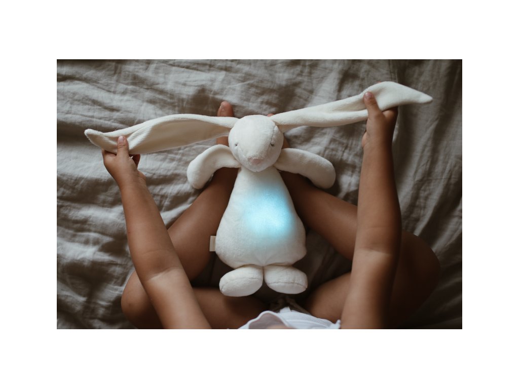 Moonie usínáček v podobě roztomilého zajíčka s nočním světlem a relaxačními zvuky pomáhá miminku uklidnit se a snáze usnout. Uklidňující zvuky připomínají dítěti prostředí v děloze maminky před jeho narozením. Usínáček nabízí pět přírodních relaxačních zvuků (lůno matky, vítr, lesní potok, mořské vlny, déšť) a ukolébavku, složenou speciálně pro novorozence. Bříško zajíčka svítí a slouží jako noční světlo s výběrem sedmi barev svícení. Jemné světlo pomáhá dítěti cítit se v postýlce bezpečně. Světlo je možné zapnout i bez zvuků a nechat jej svítit po celou noc. Zajíček se při svícení nijak nezahřívá a je pro dítě zcela bezpečný. Inteligentní senzor aktivuje zvuk a světlo, když dítě začne plakat. Hračka pak přehrává relaxační zvuky a jemně svítí po dobu 30 minut. Hračka se dobíjí s pomocí USB kabelu. Po vyjmutí zvukového a svítícího modulu můžete hračku prát v pračce. USB kabel je součástí balení. Moonie zajíček je vyroben z nejkvalitnějších, certifikovaných a bezpečných materiálů pro děti. Hračka byla testována švýcarskou laboratoří SGS a je v souladu se směrnicí 2009/48/ES o bezpečnosti hraček. Všechny materiály, ze kterých je zajíček MOONIE vyroben, jsou certifikovány OEKO-TEX a jsou super jemné a příjemné na dotek. Rozměry: 28 x 16 x 10,5 cm Vhodné pro děti od narození.Doplňkové parametry